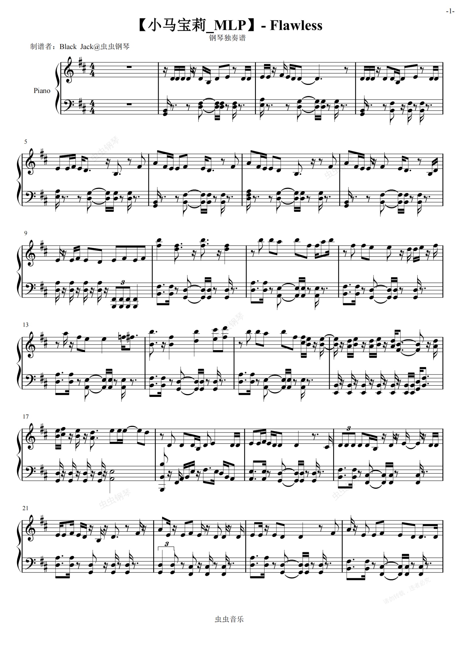 钢琴谱:【小马宝莉Flawless - 丹尼尔·英格拉姆