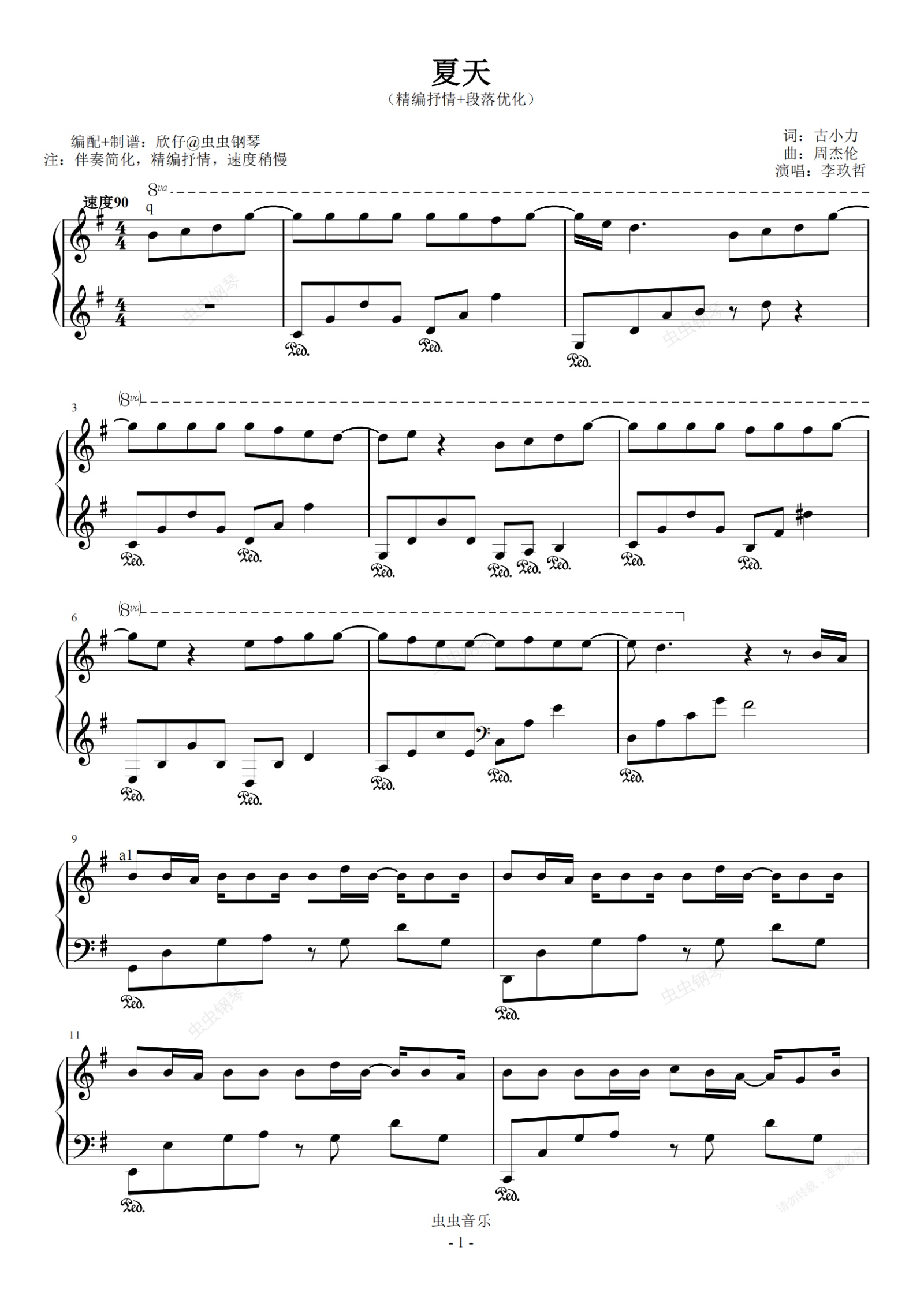 钢琴谱:李玖哲-G《夏天》(精编抒情+段落优化)