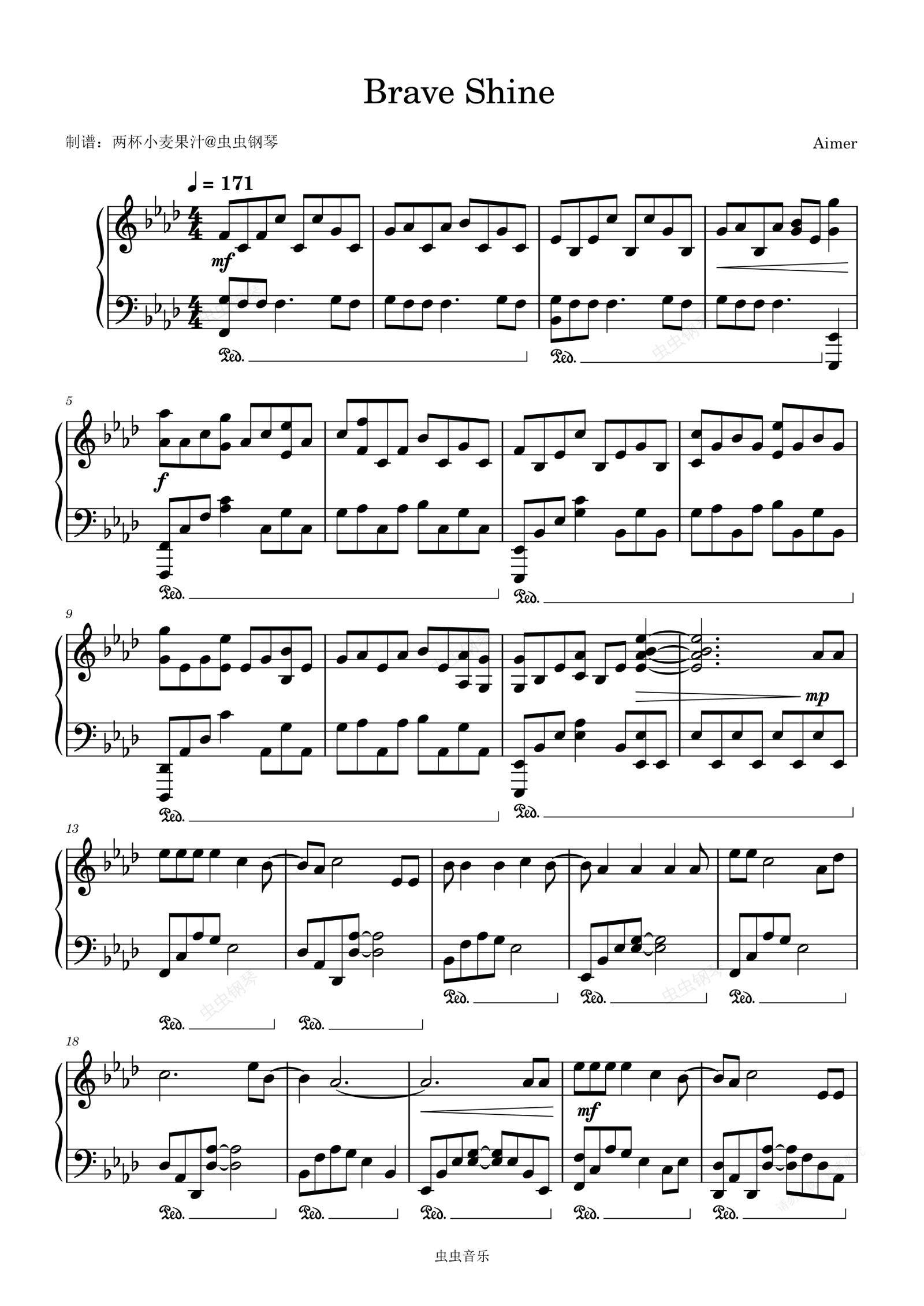 钢琴谱:Brave Shine-Aimer