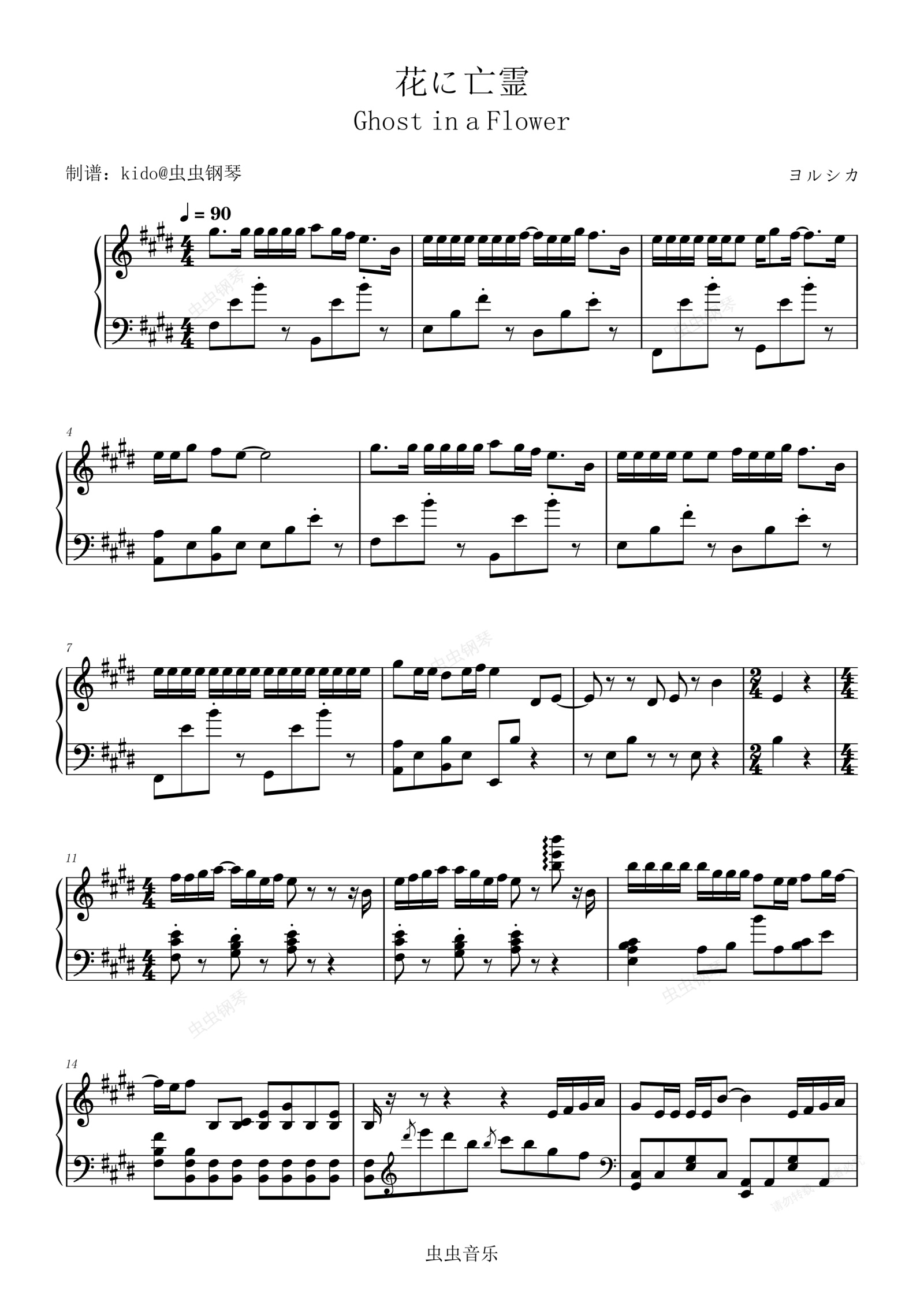 钢琴谱:花に亡霊  花上亡灵  ヨルシカ