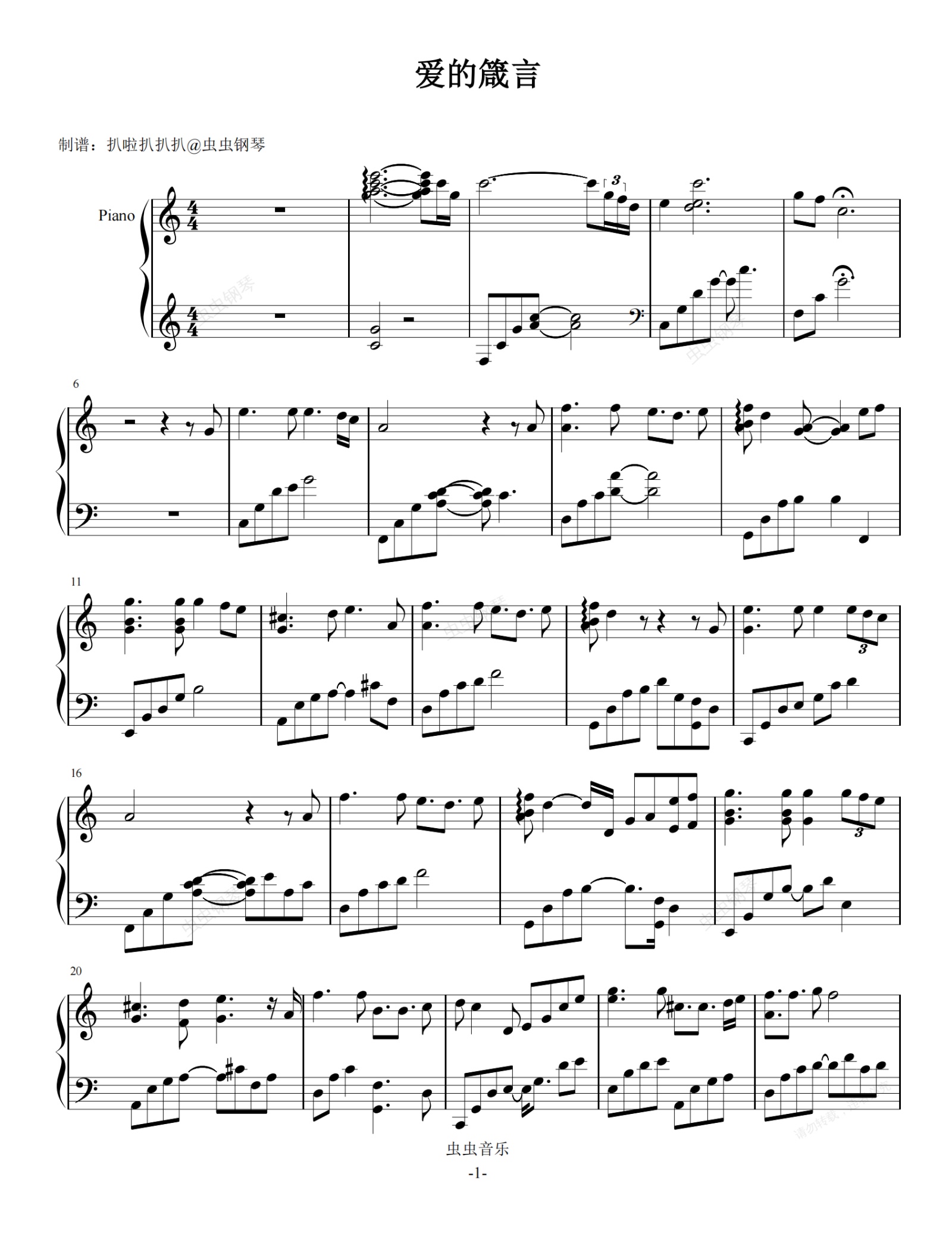 钢琴谱:《爱的箴言》-周蕙-钢琴演奏谱 C调精致版