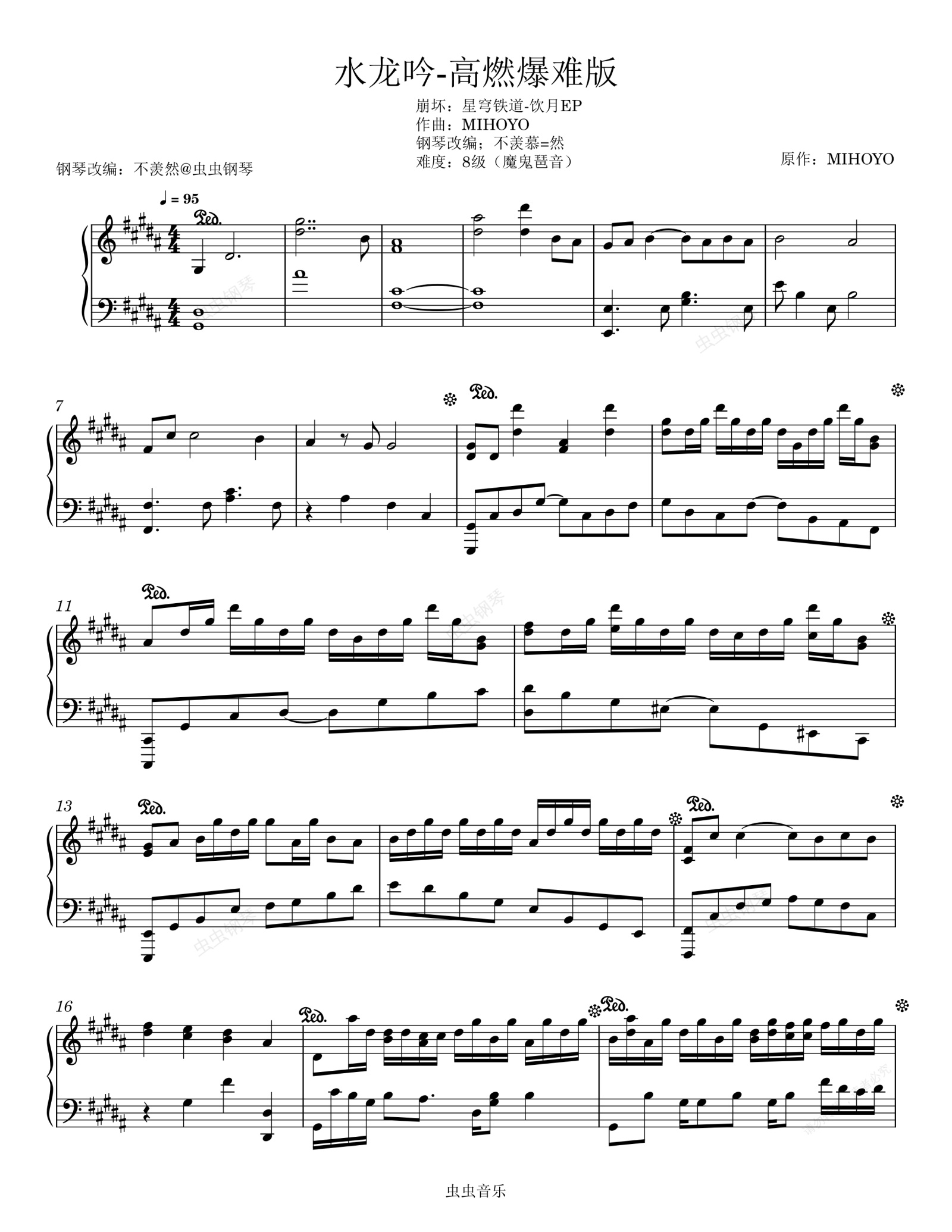钢琴谱:水龙吟(高燃独奏版)崩坏:星穹铁道-饮月EP