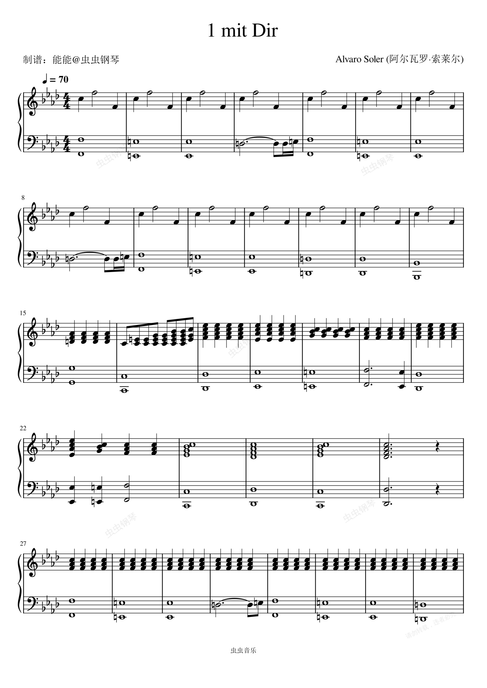 钢琴谱:1 mit Dir (aus "Sing meinen Song, Vol. 6") - Alvaro Soler (阿尔瓦罗·索莱尔)