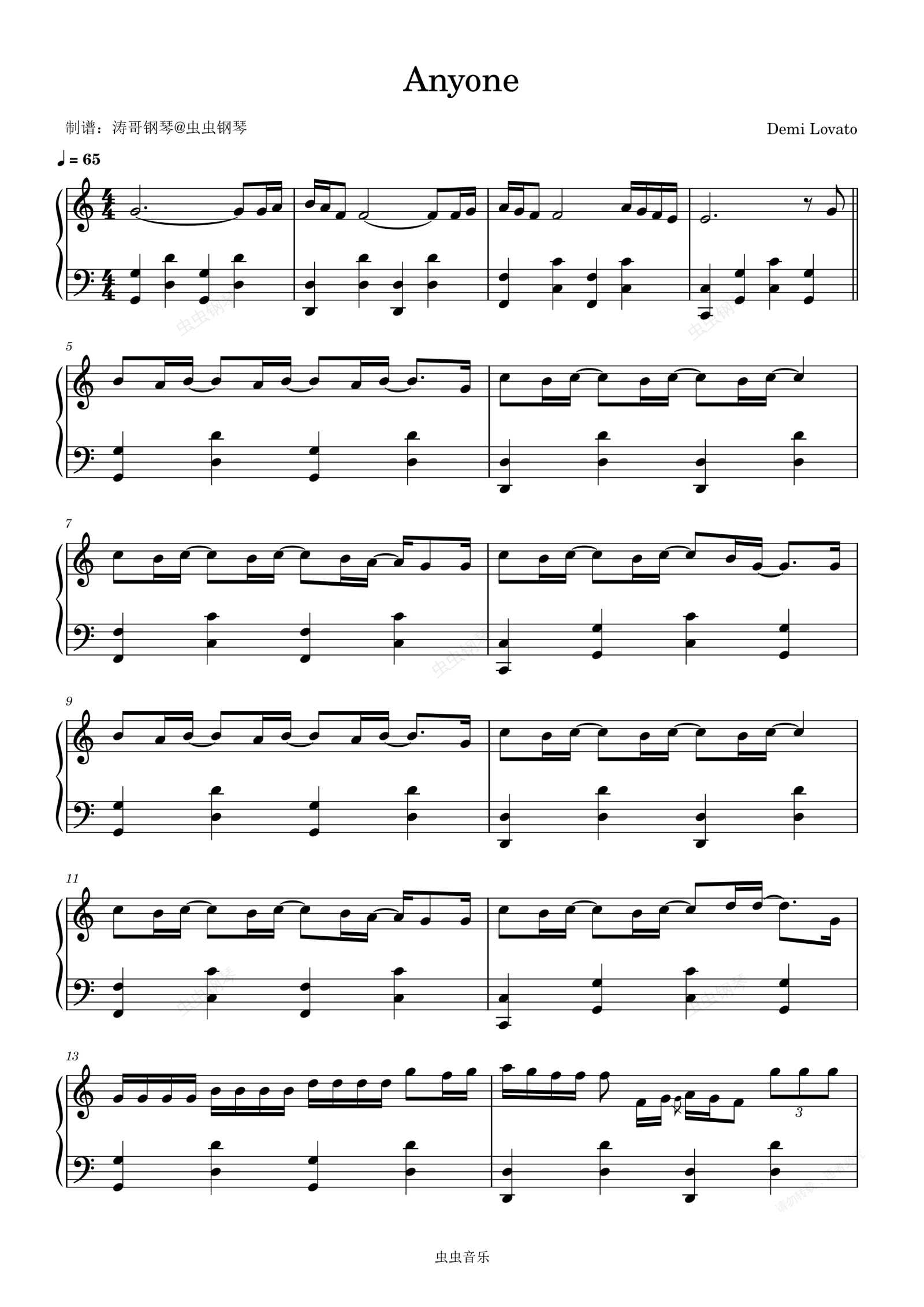 钢琴谱:Anyone (Explicit) - Demi Lovato