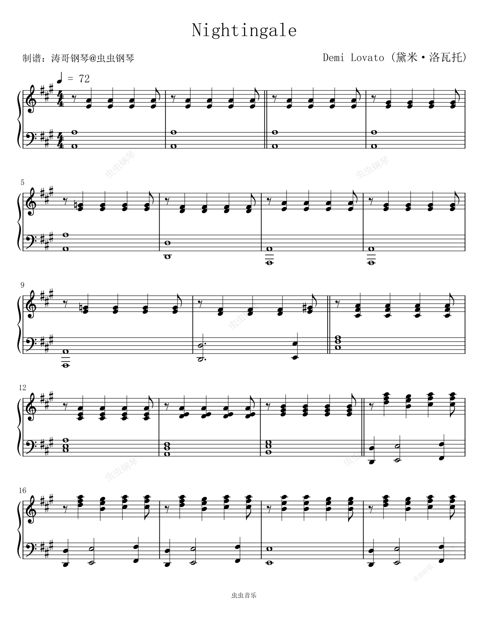 钢琴谱:Nightingale - Demi Lovato (黛米·洛瓦托)