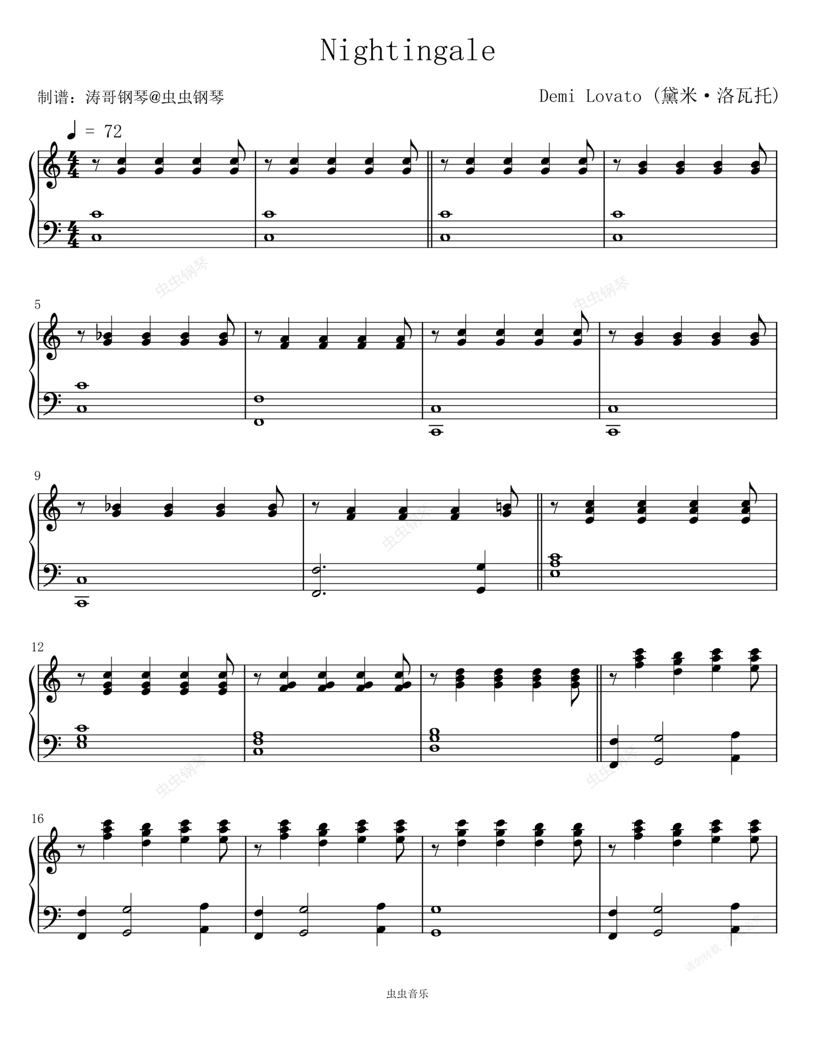 钢琴谱:Nightingale - Demi Lovato (黛米·洛瓦托)