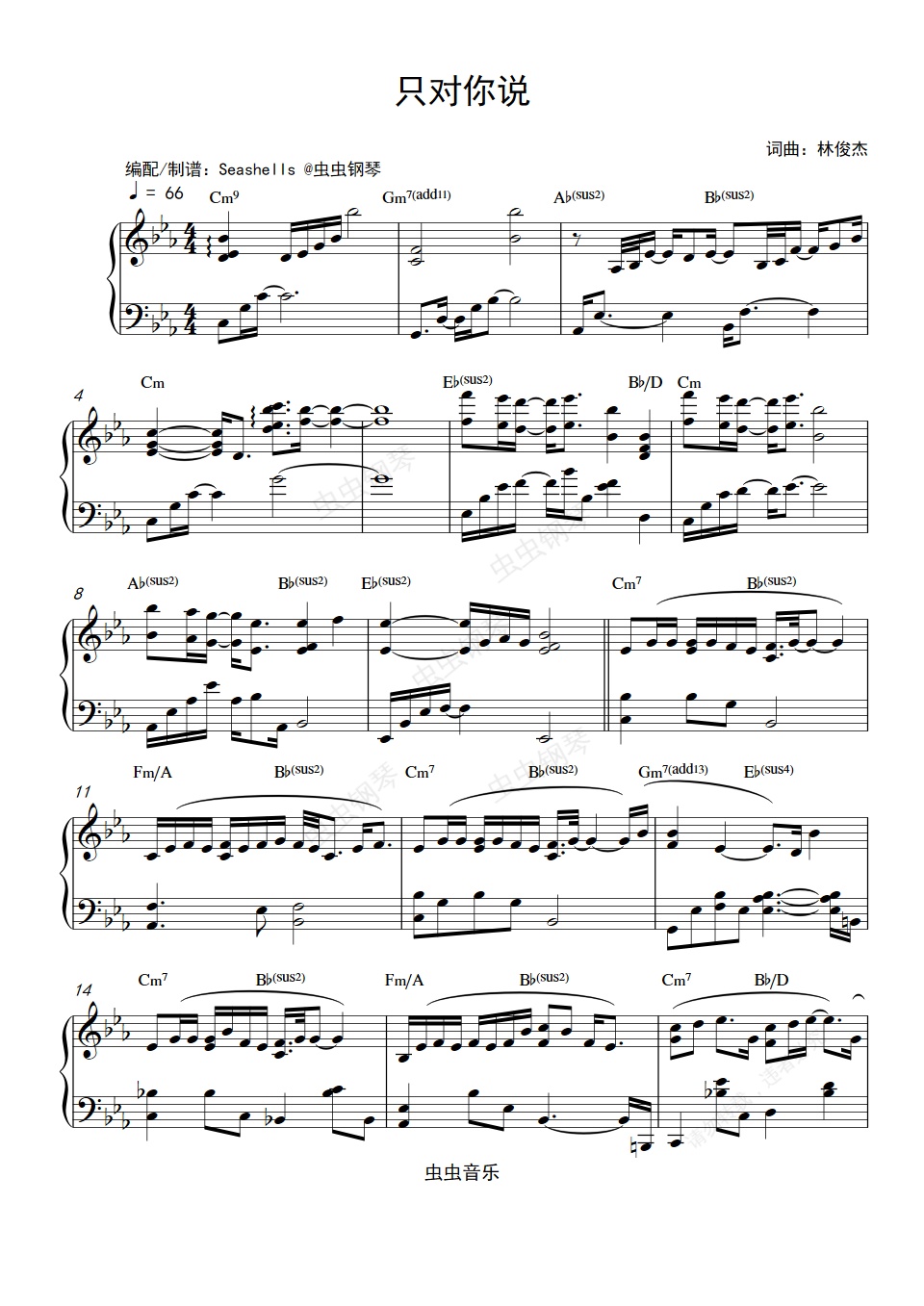 钢琴谱:林俊杰-《只对你说》精编钢琴独奏