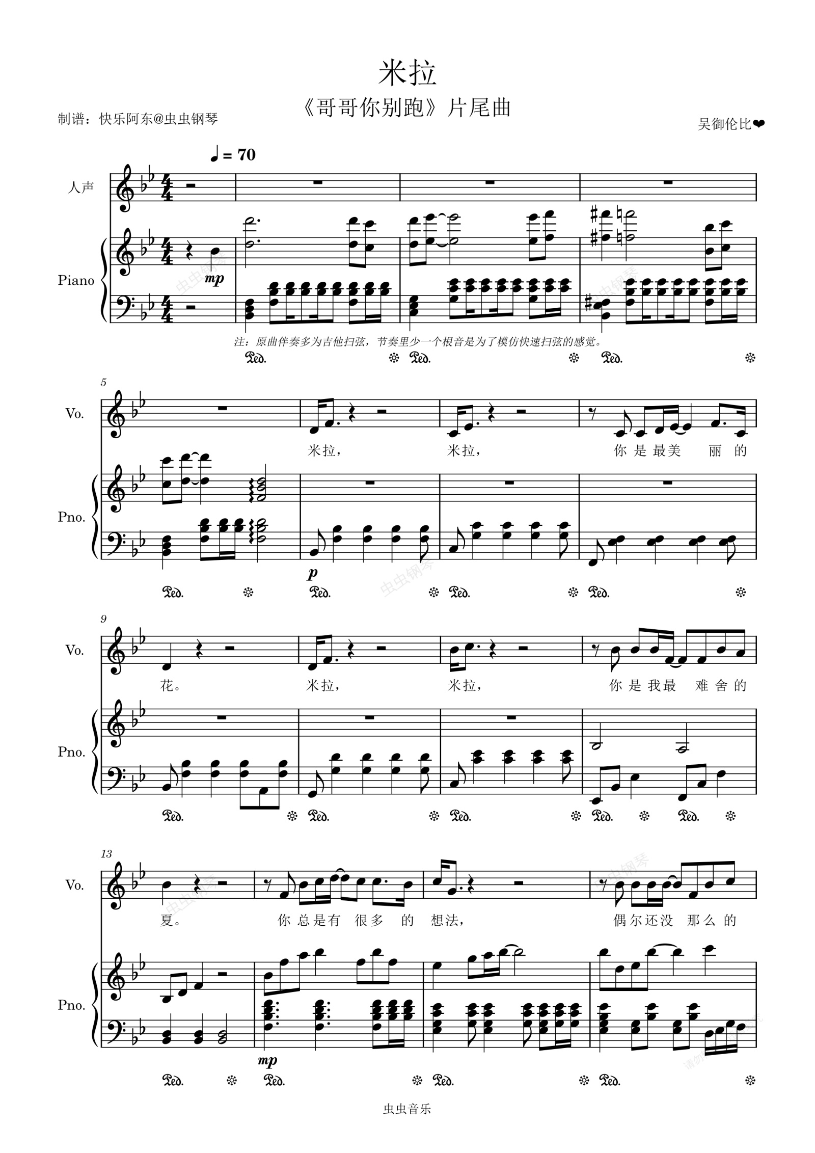 钢琴谱:米拉-哥哥你别跑片尾曲-钢琴伴奏谱