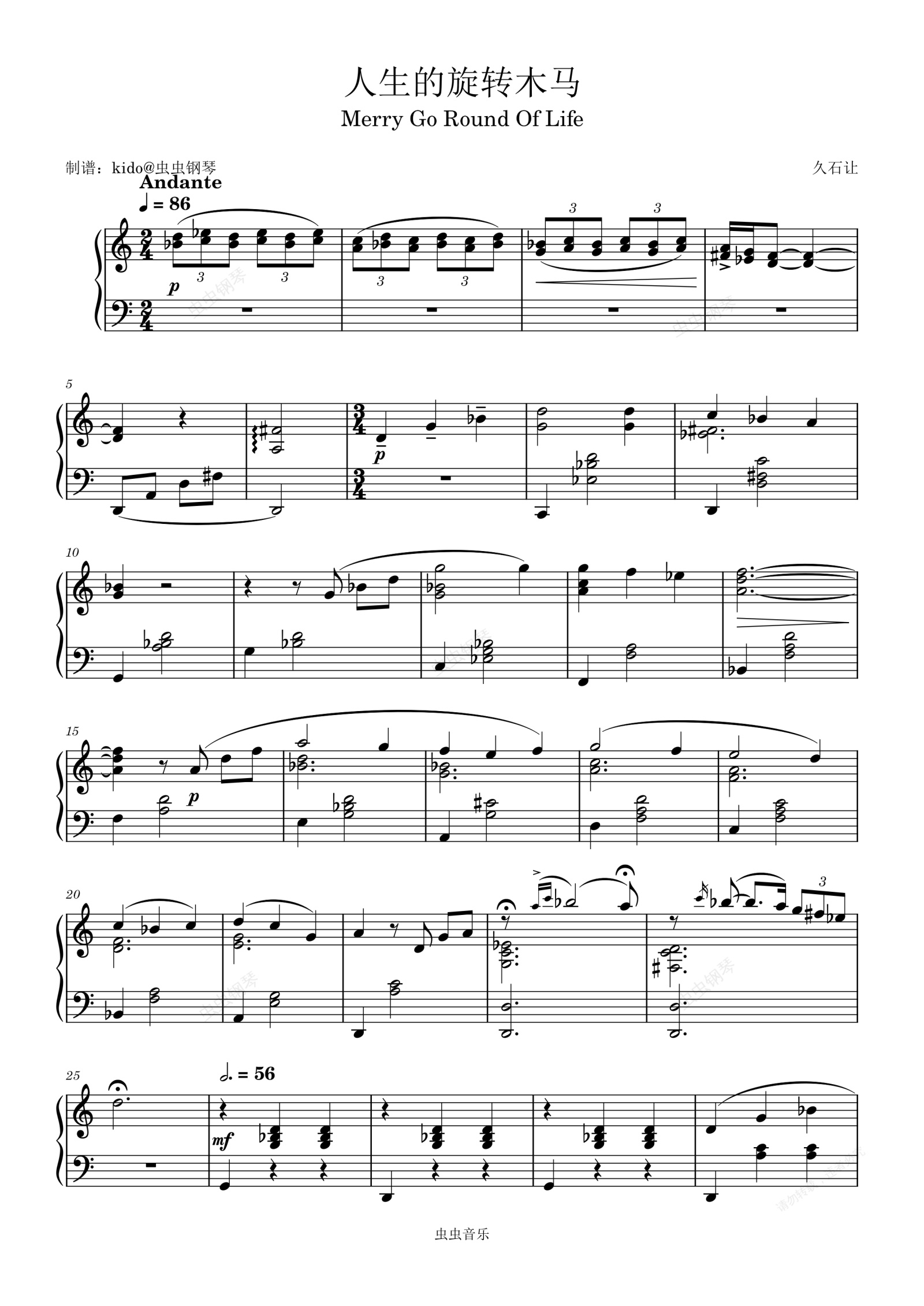 钢琴谱:人生的旋转木马《哈尔的移动城堡》久石让