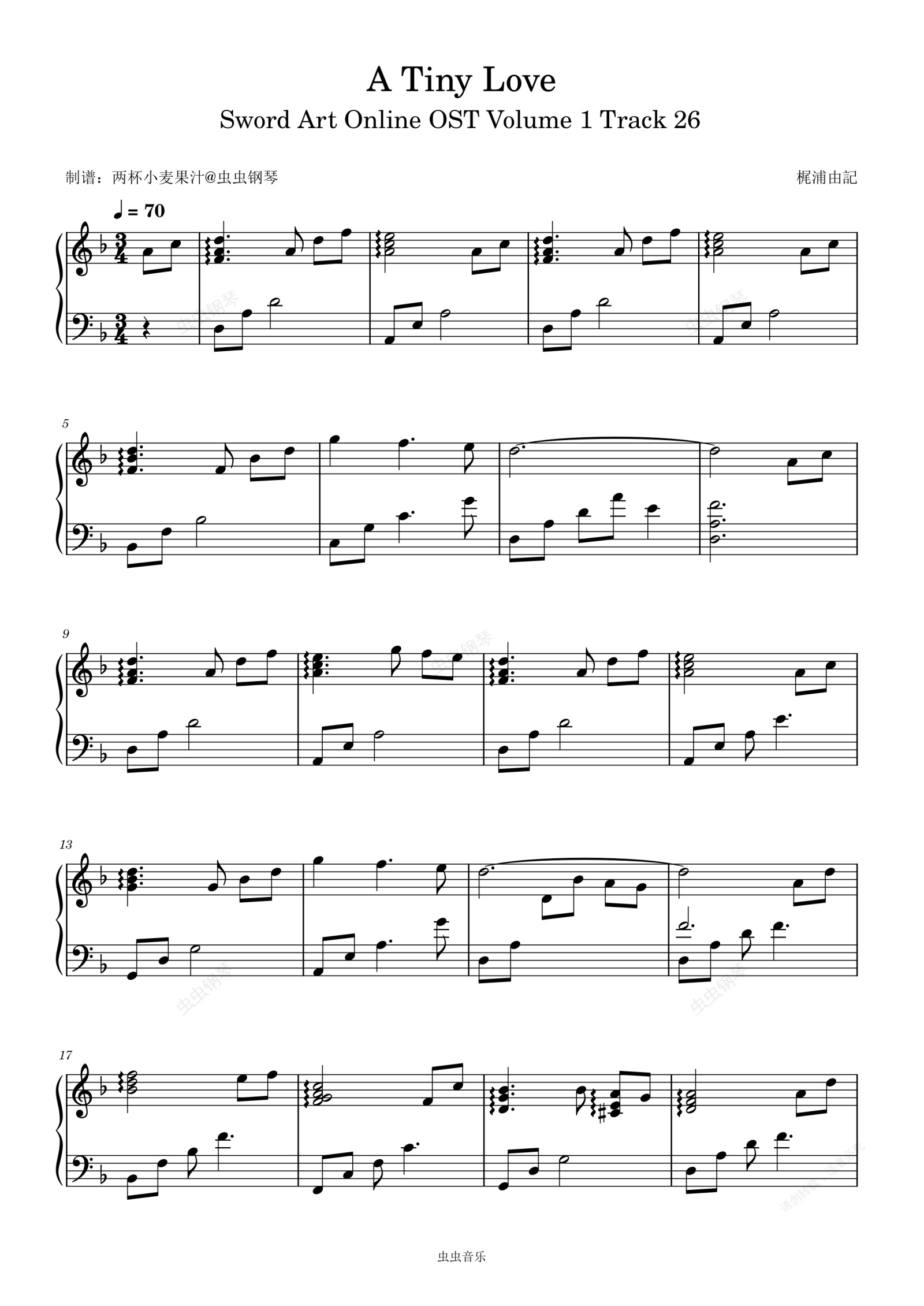 钢琴谱:A Tiny Love-《刀剑神域插曲》梶浦由記