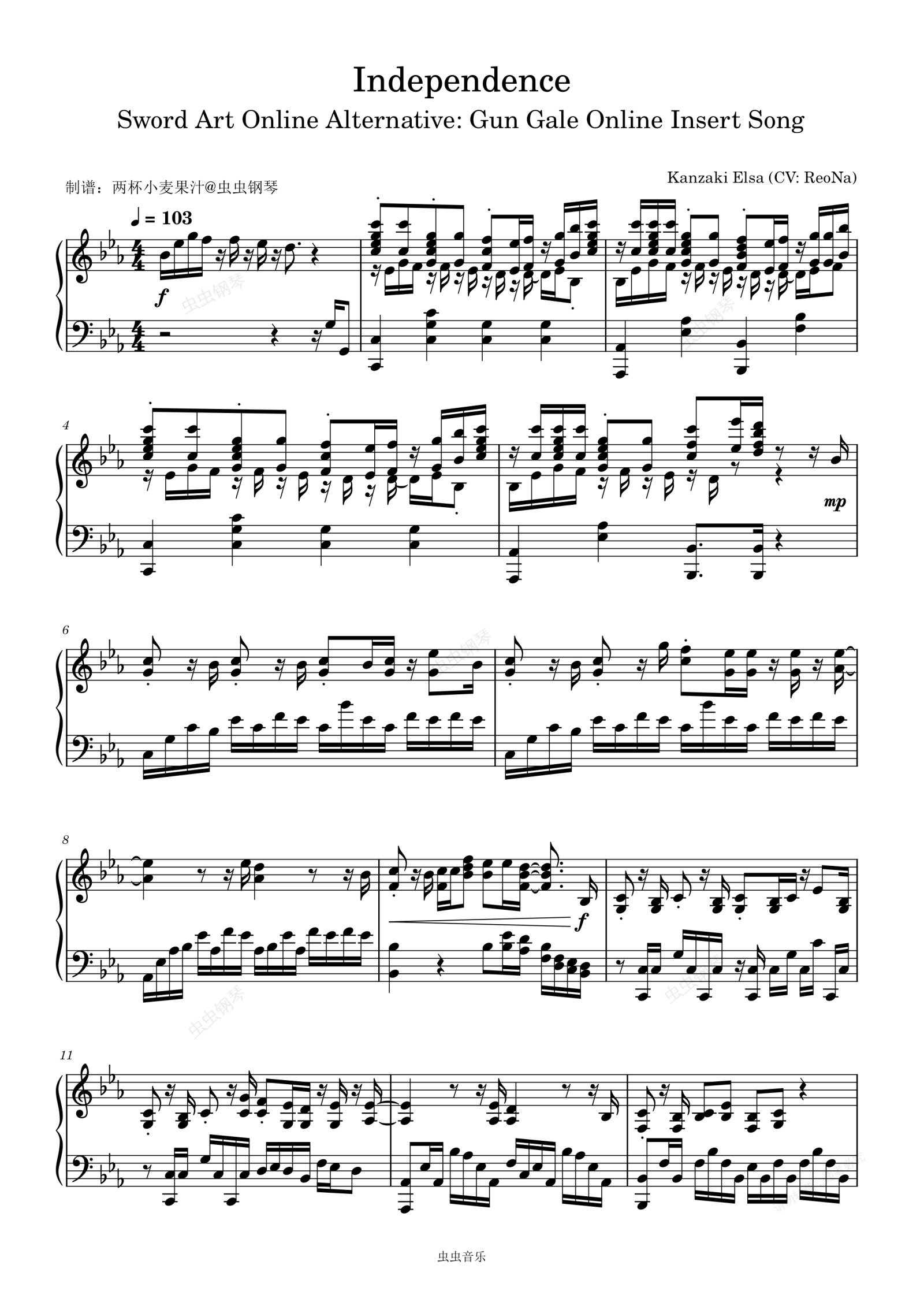 钢琴谱:Independence-ReoNa