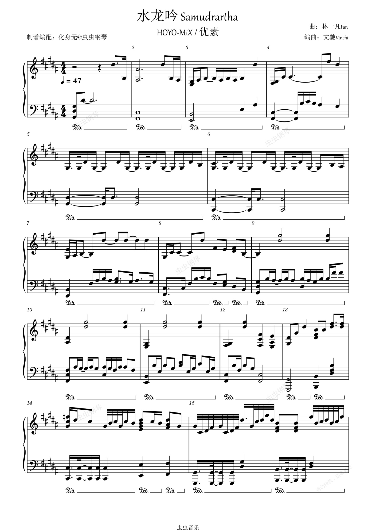 钢琴谱:水龙吟 饮月君EP 崩坏星穹铁道-长生梦短