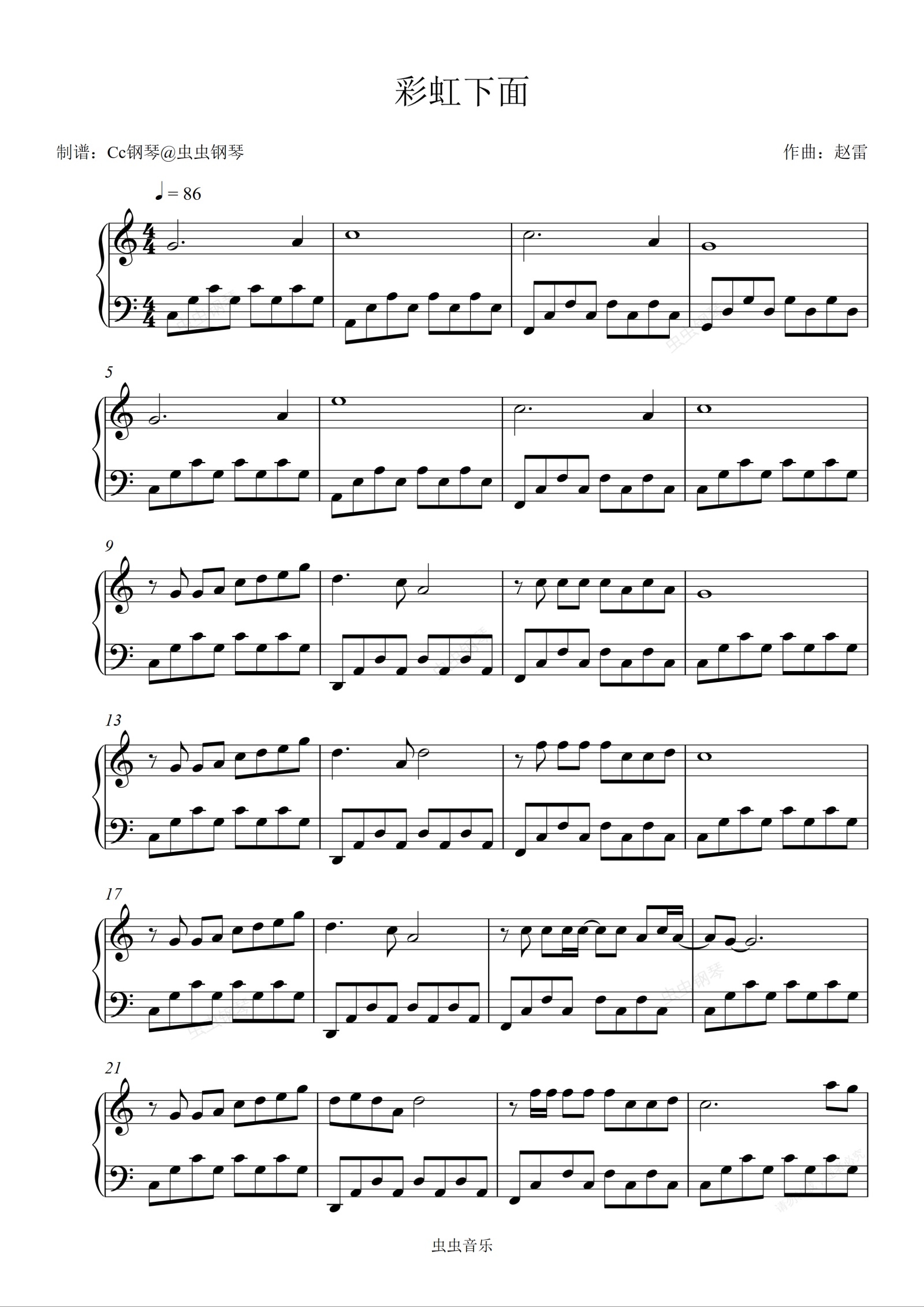 钢琴谱:彩虹下面 C调 好听易上手