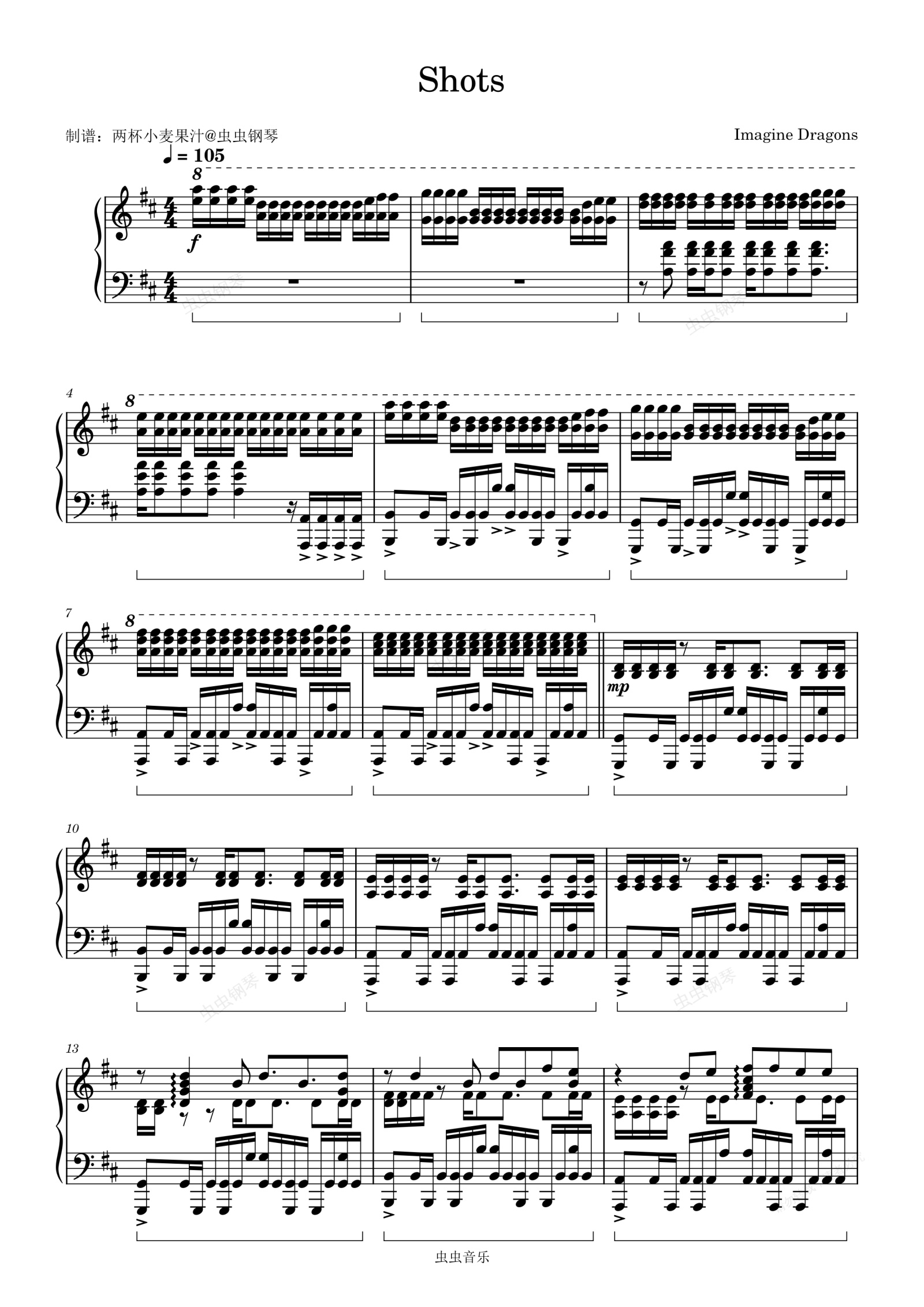 钢琴谱:Shots-Imagine Dragons(钢琴版)