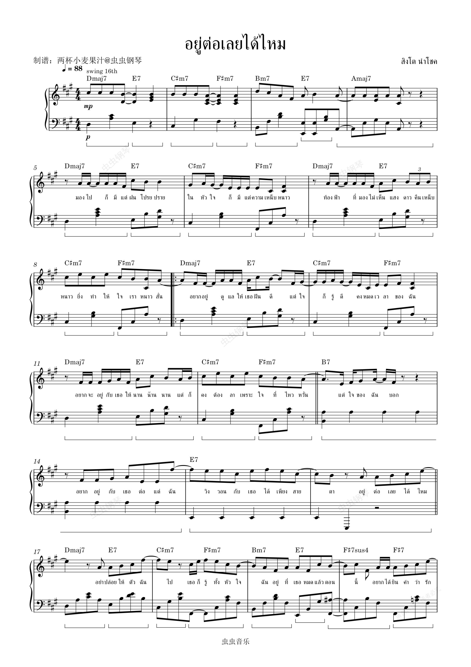 钢琴谱:อยู่ต่อเลยได้ไหม-สิงโต นำโชค