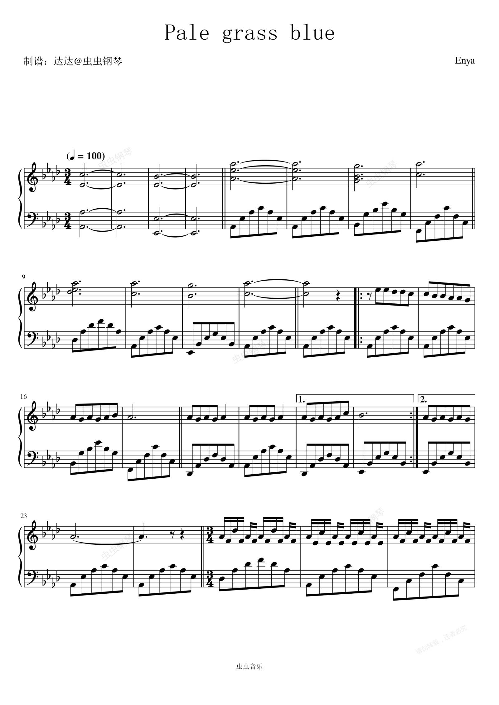 钢琴谱:Pale Grass Blue - Enya (恩雅)