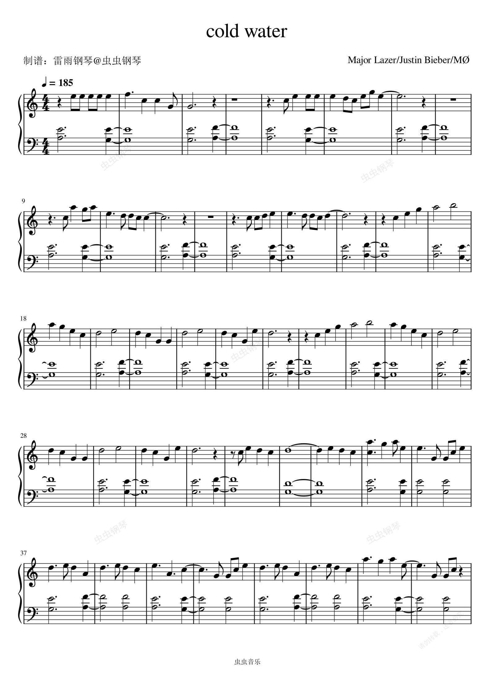 钢琴谱:Cold Water - Major Lazer/Justin Bieber/MØ