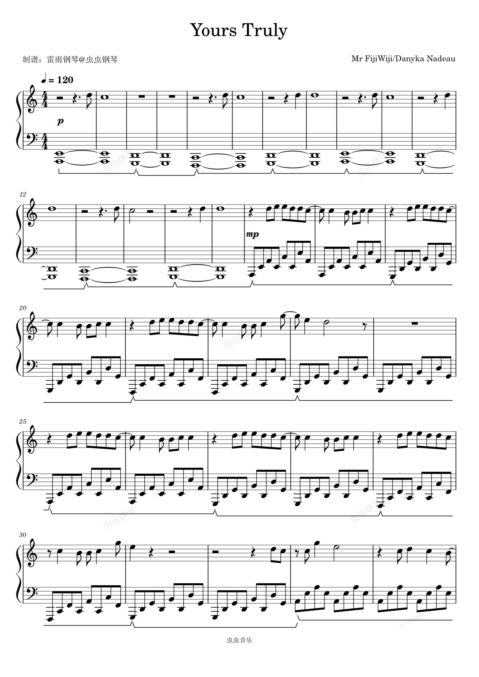 钢琴谱:Yours Truly - Mr FijiWiji/Danyka Nadeau