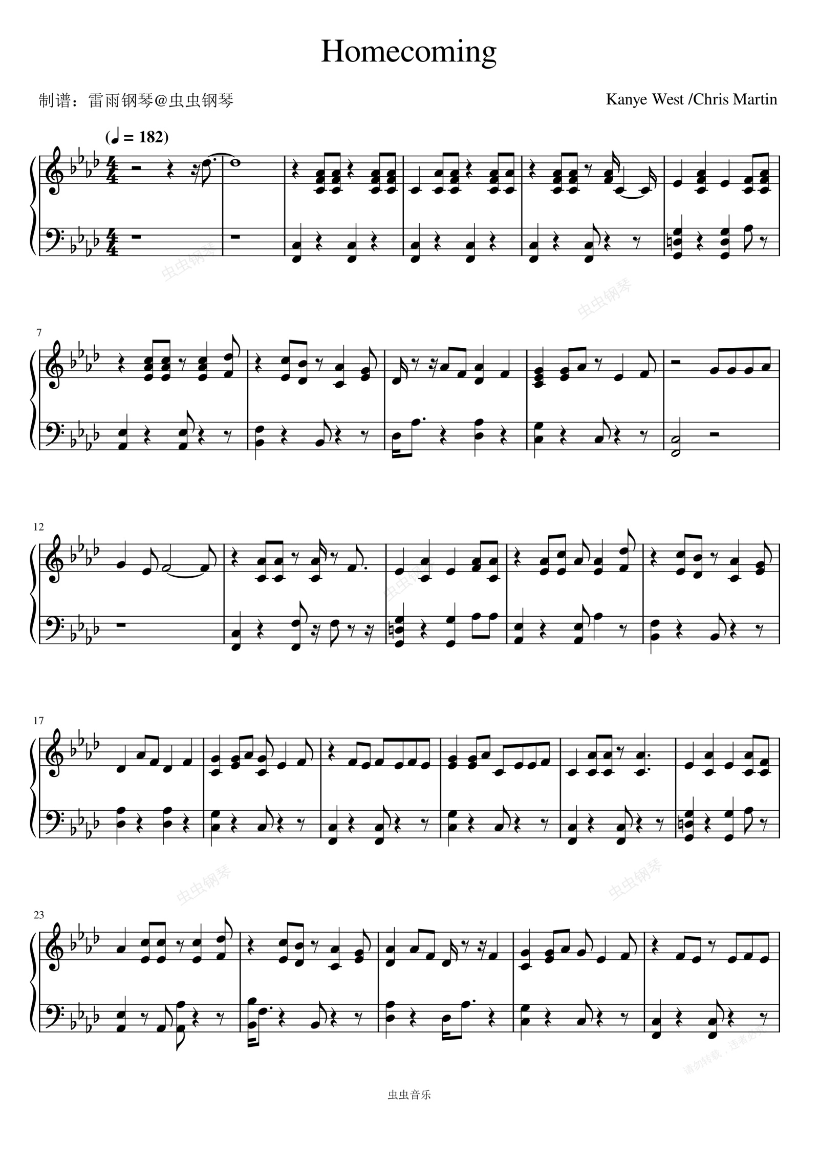 钢琴谱:Homecoming - Kanye West /Chris Martin