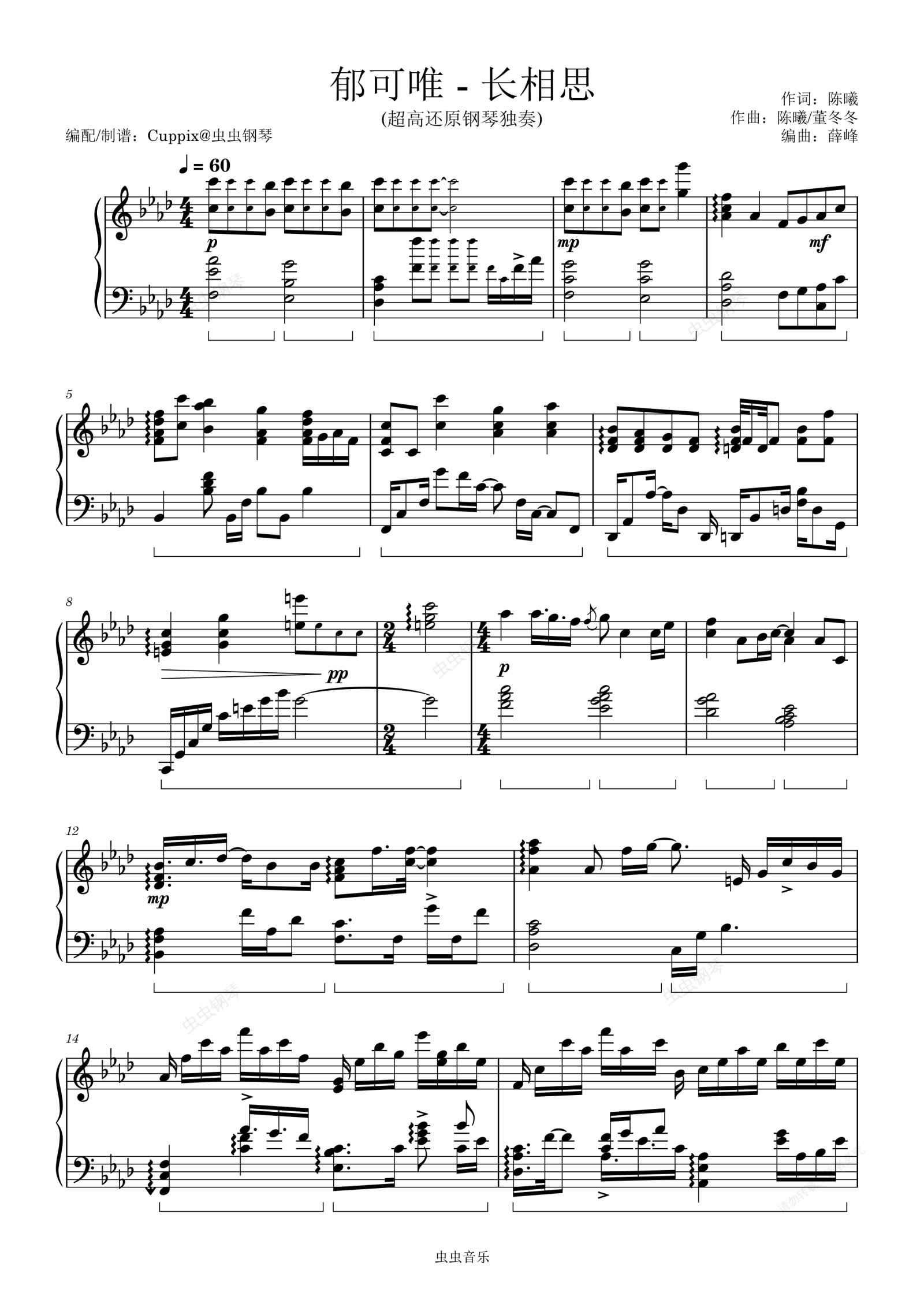 钢琴谱:郁可唯《长相思》超高还原独奏版(长相思 电视剧小夭主题曲)