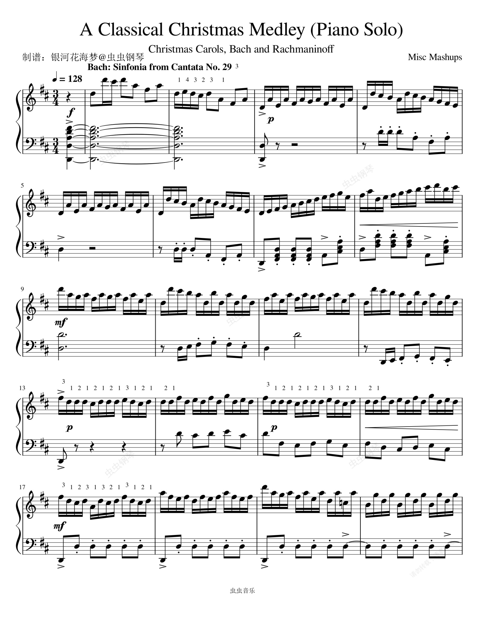 钢琴谱:A Classical Christmas Medley with Bach and Rachmaninoff 巴赫和拉赫玛尼诺夫的古典圣诞混合曲 D大调