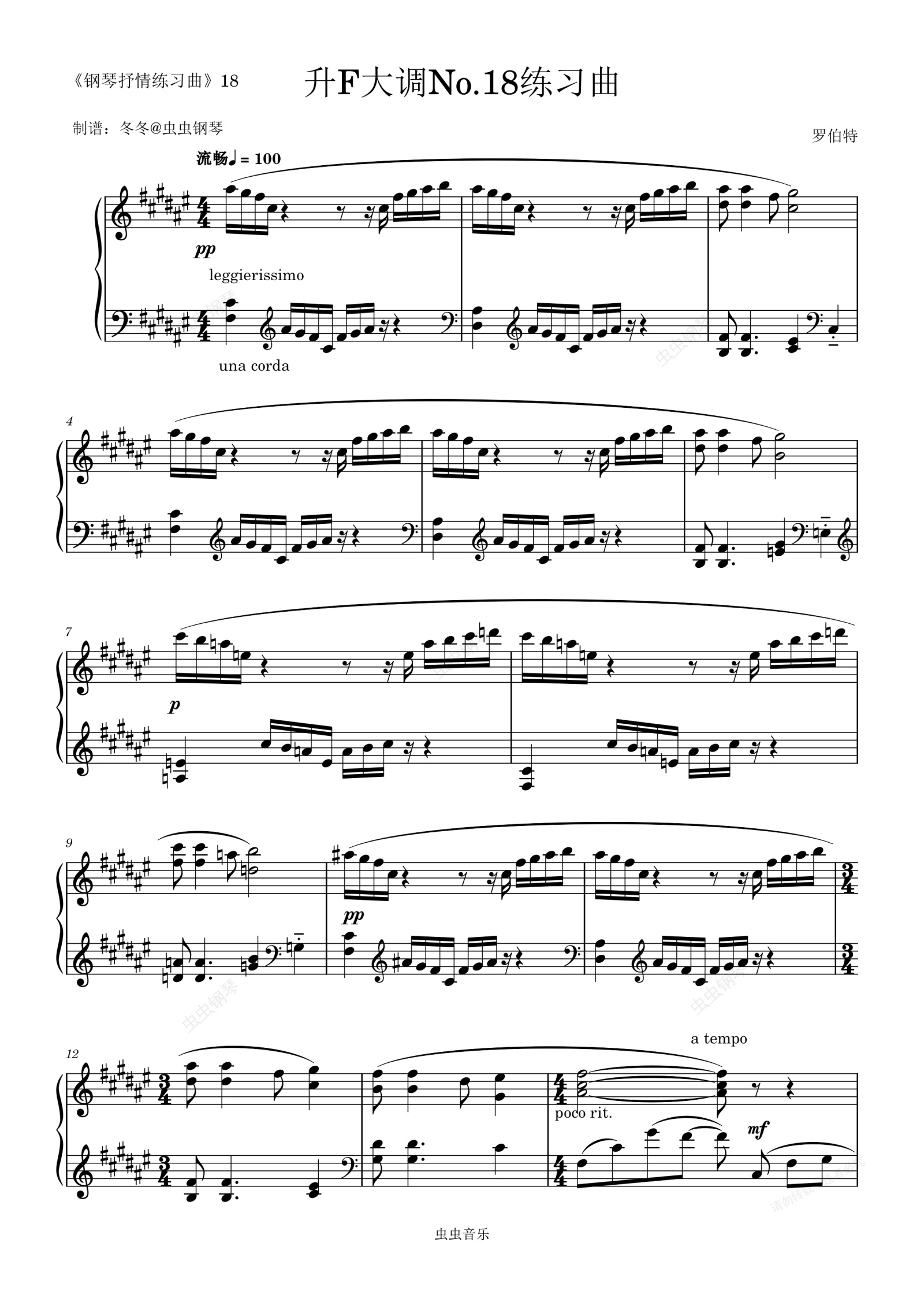 钢琴谱:升F大调No.18练习曲