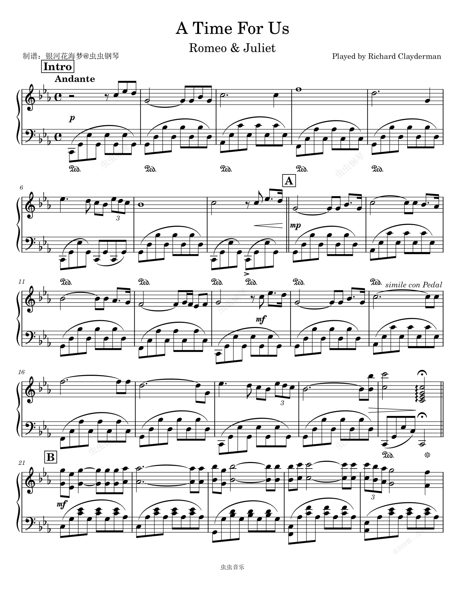 钢琴谱:A Time For Us 电影《罗密欧与茱丽叶》插曲 理查德·克莱德曼
