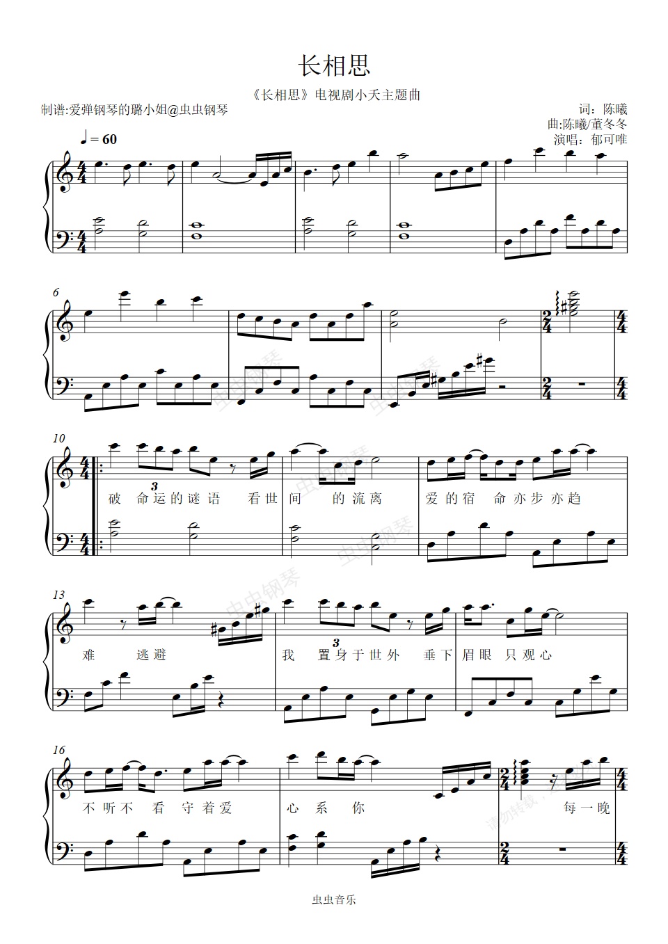 钢琴谱:长相思 - 《长相思》电视剧小夭主题曲 - C调简单版 - 附歌词