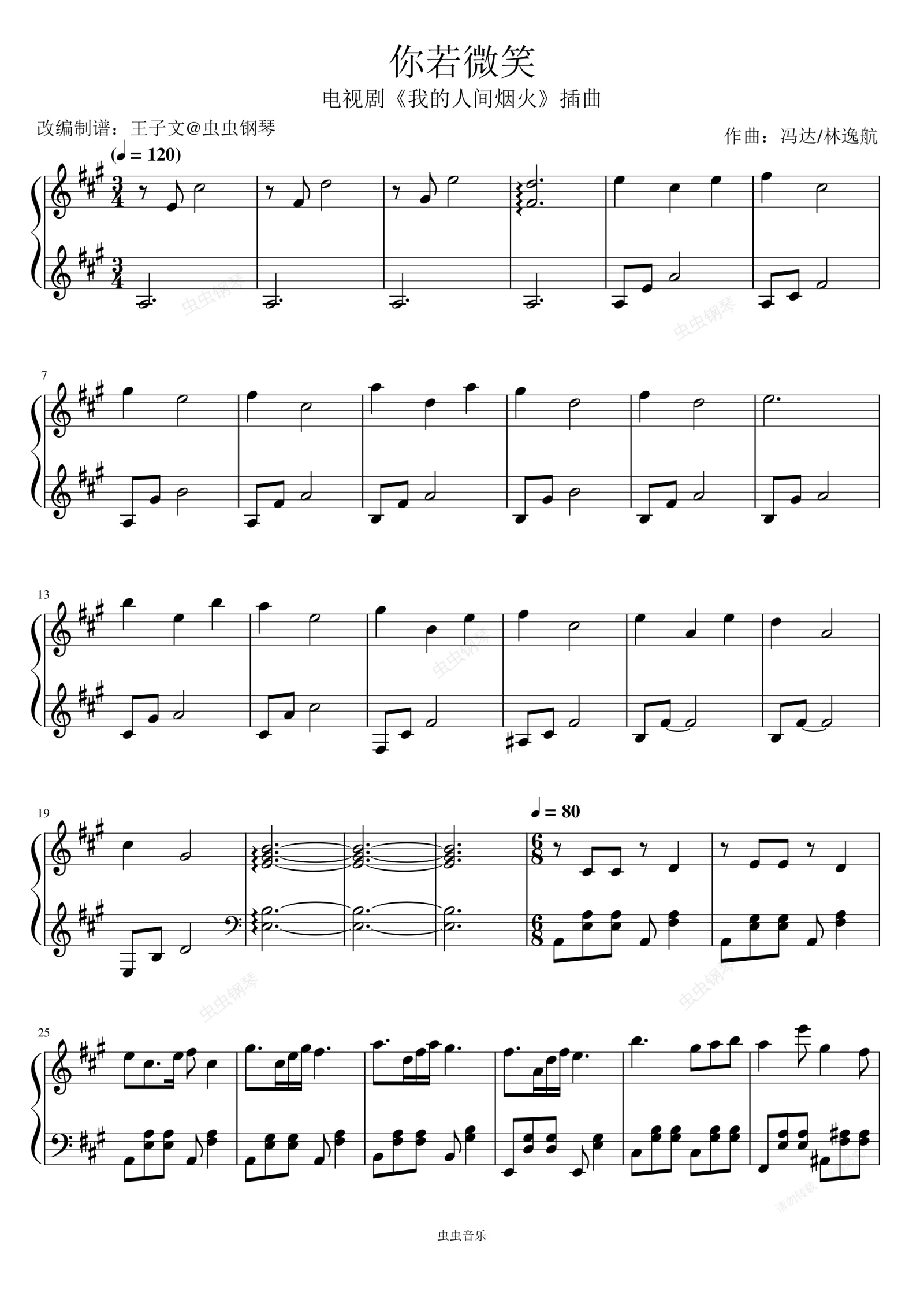 钢琴谱:《你若微笑》-《我的人间烟火》插曲