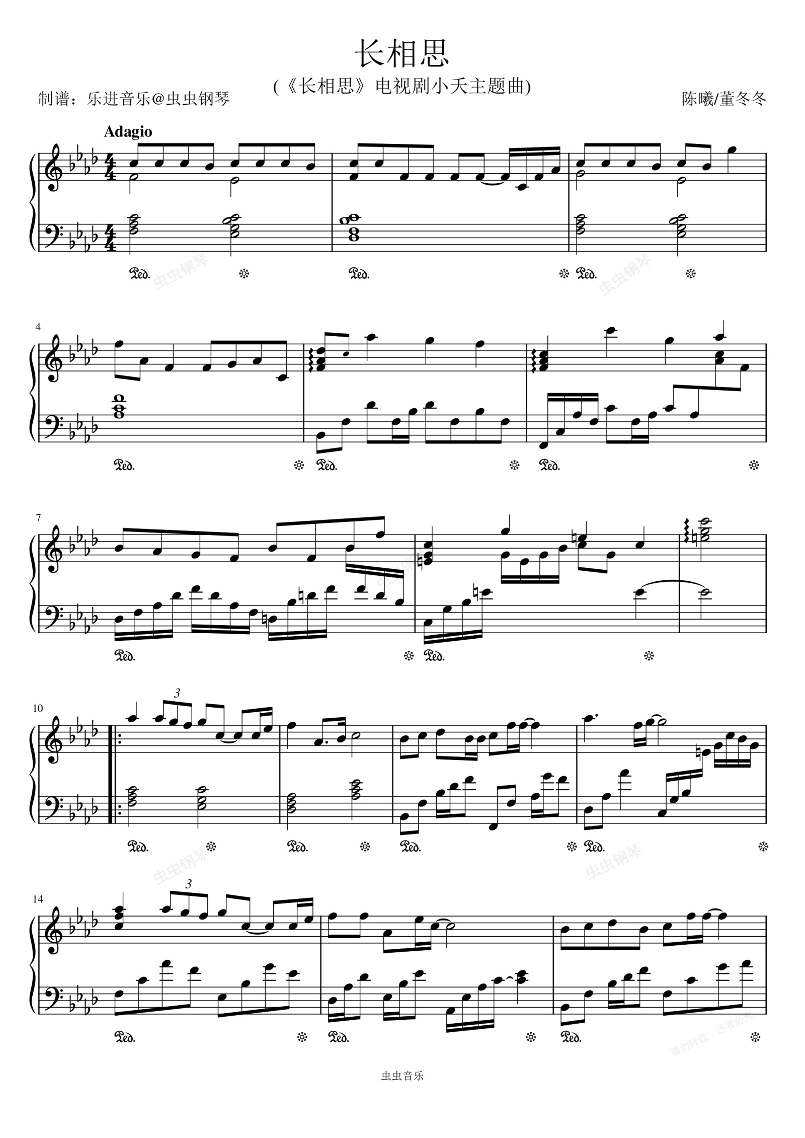 钢琴谱:《长相思》原调,电视剧小夭主题曲
