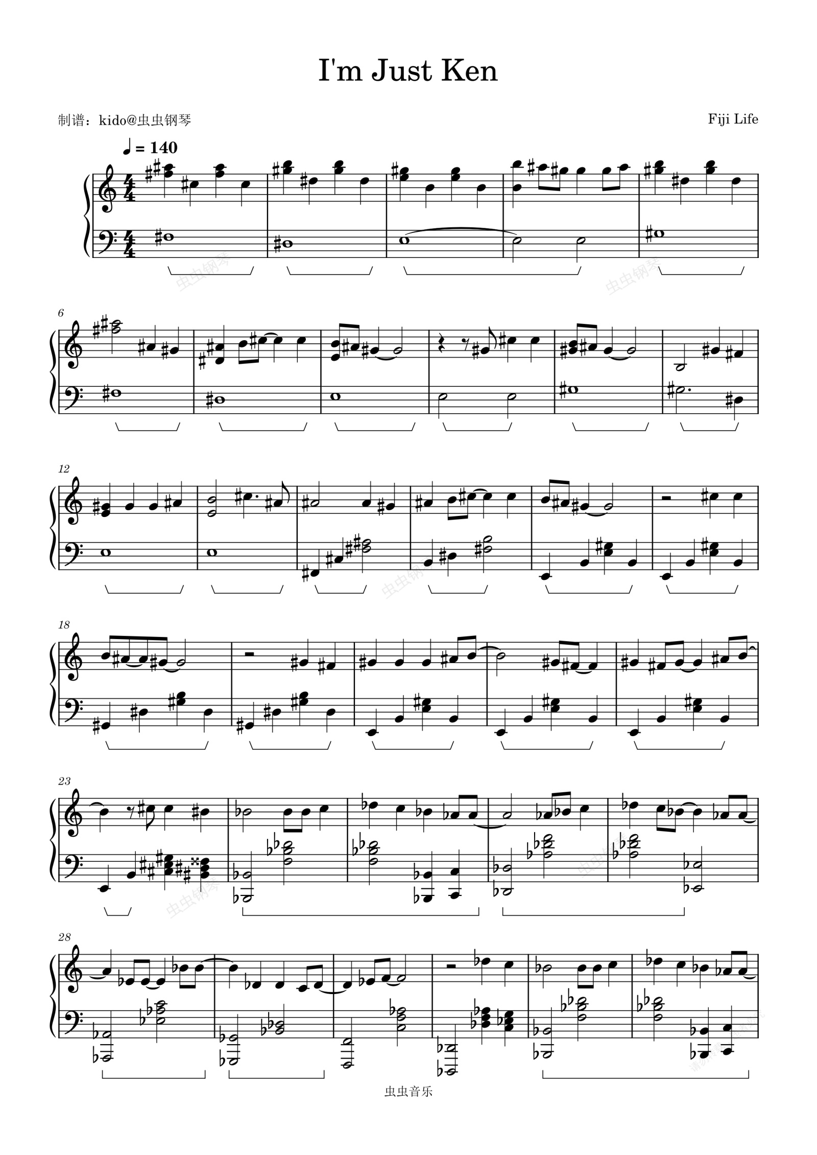 钢琴谱:I'm Just Ken 《芭比》Fiji Life
