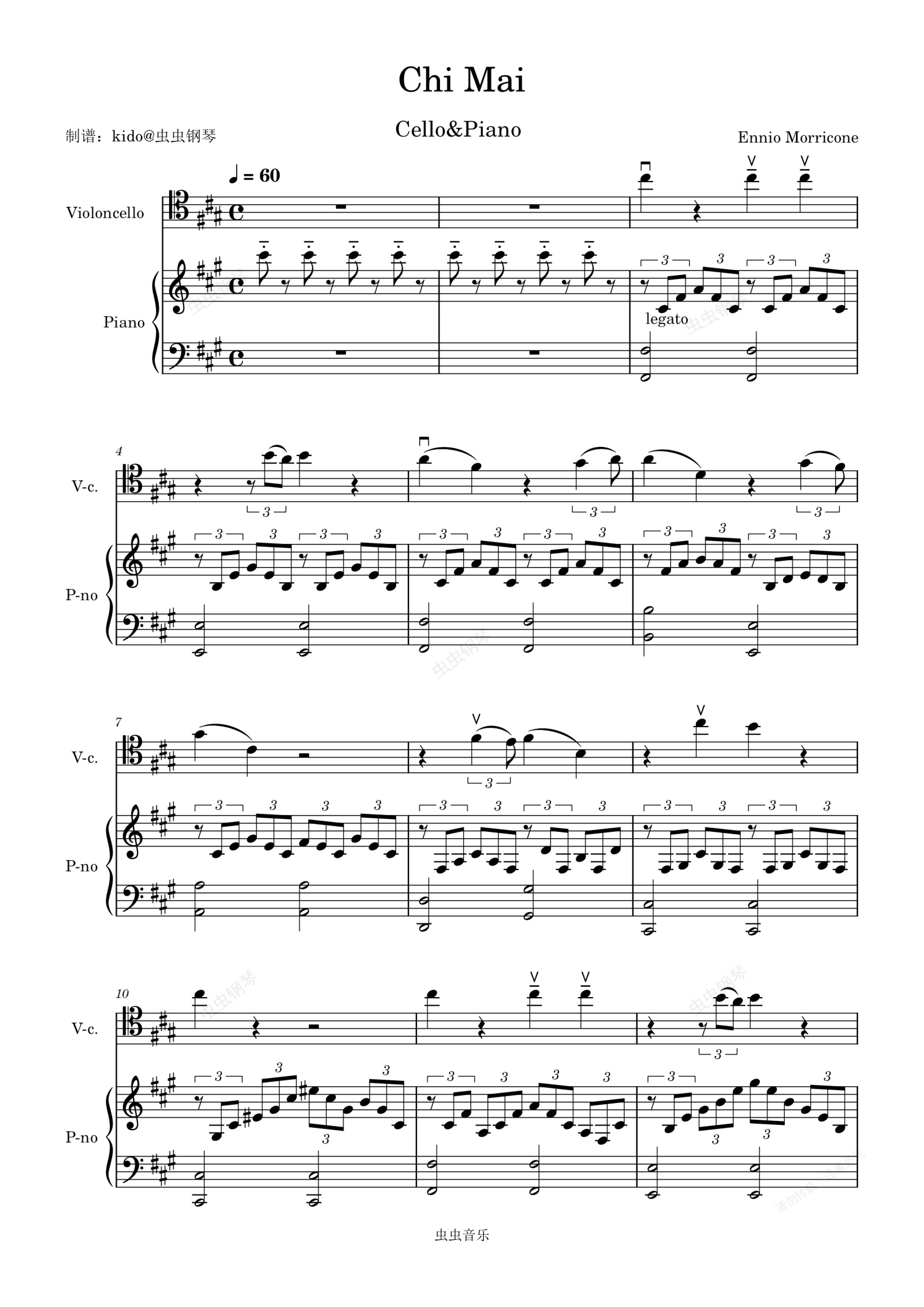 钢琴谱:Chi Mai 无论谁 《阴谋的代价》 Ennio Morricone