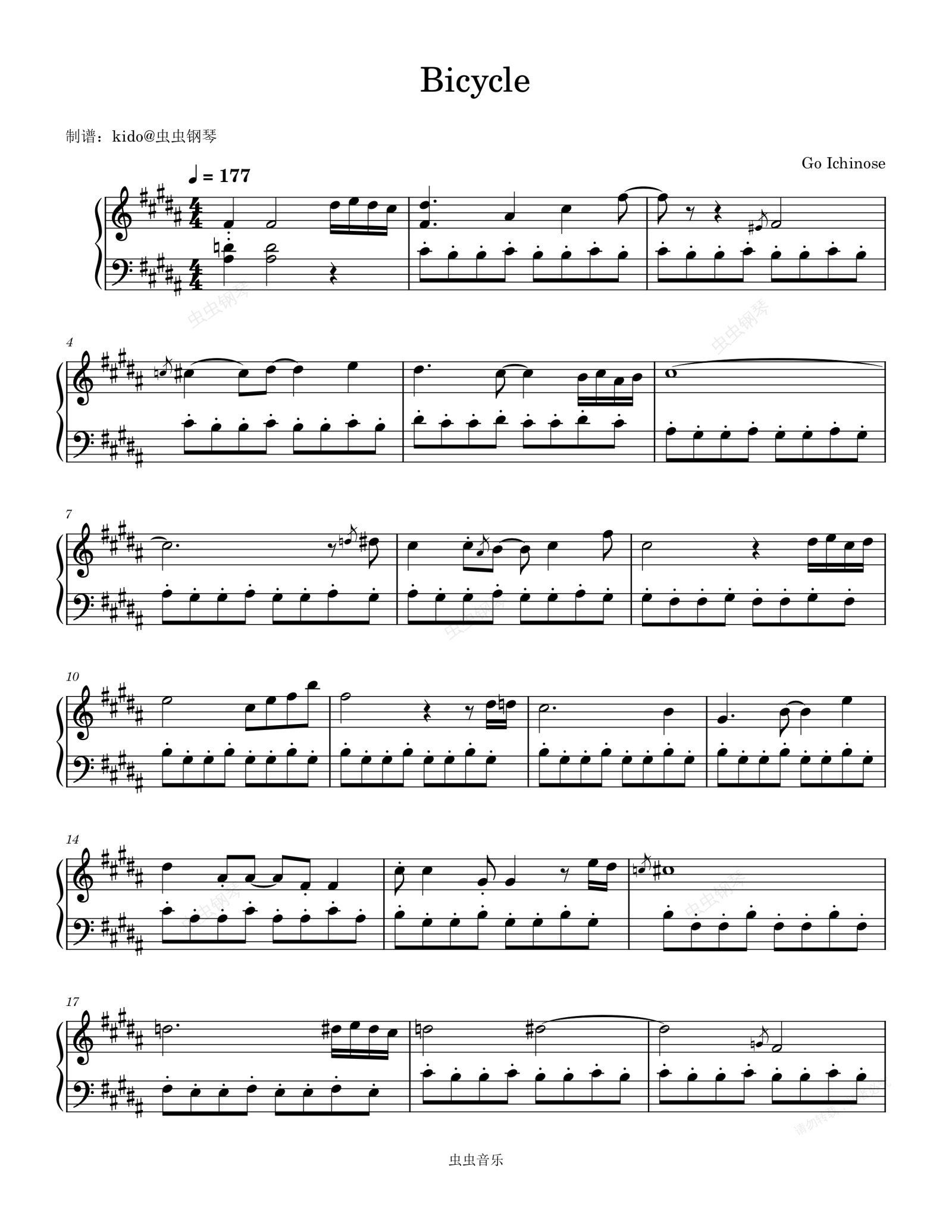 钢琴谱:Bicycle 自行车 Go Ichinose