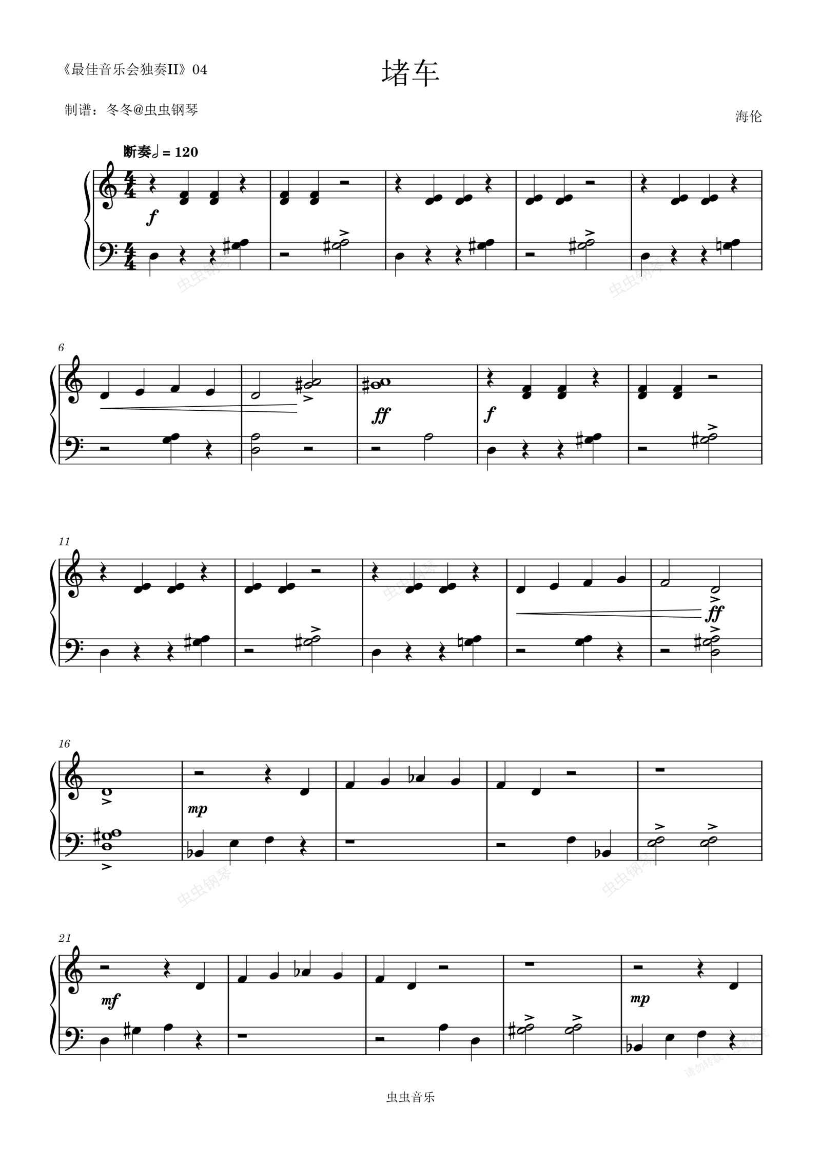 钢琴谱:堵车