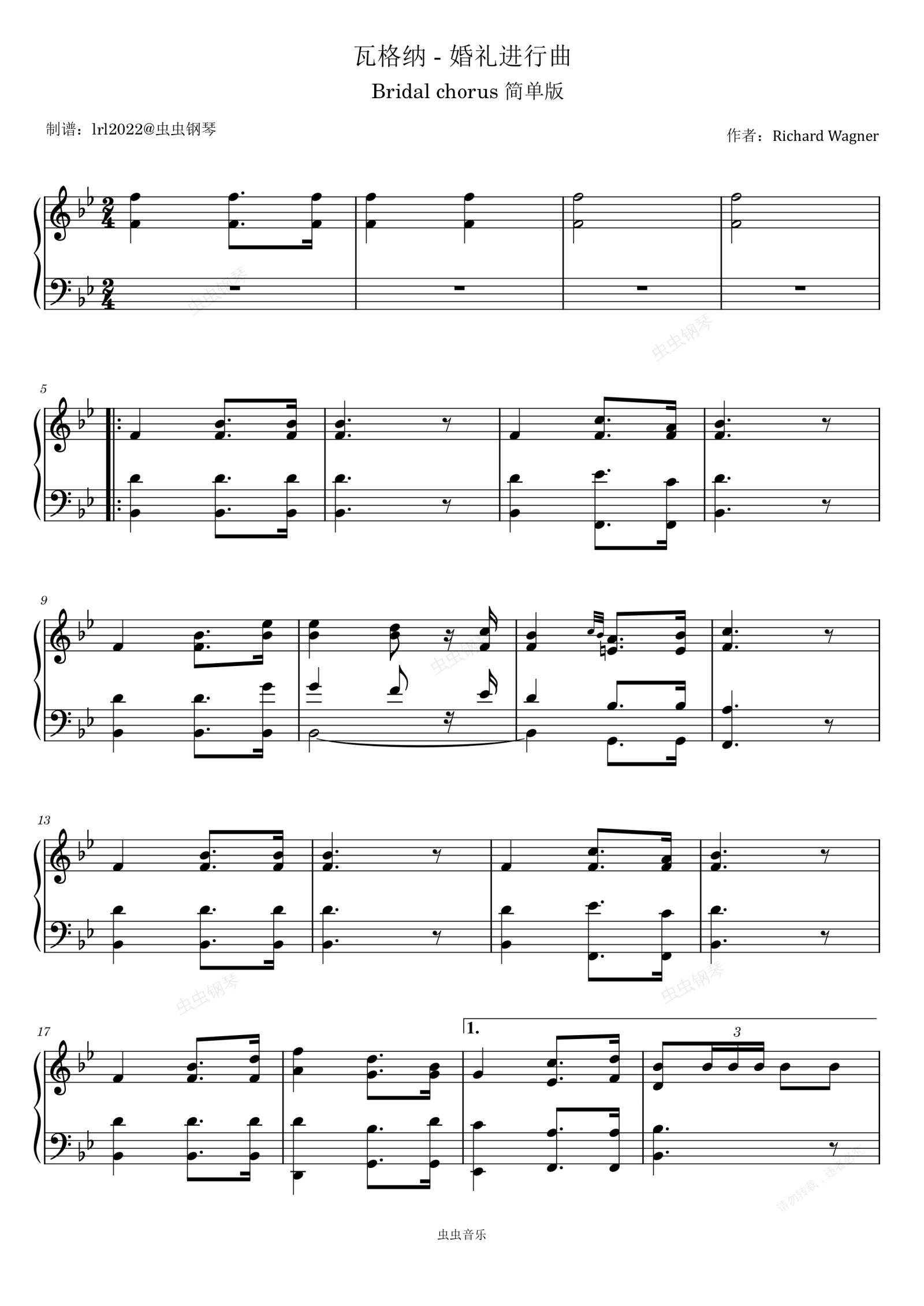 钢琴谱:瓦格纳 - 婚礼进行曲 -简单版 - Wedding March (Bridal chorus)