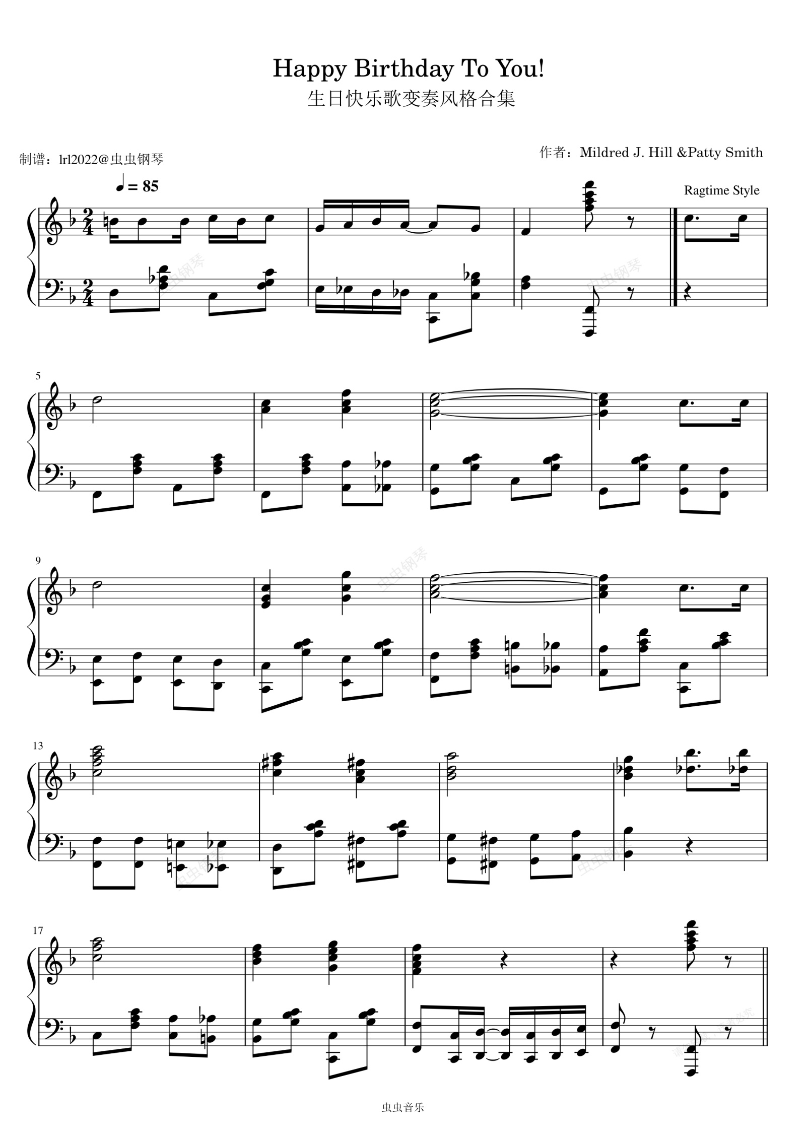 钢琴谱:Happy Birthday To You! - 生日快乐歌变奏风格合集 - 李斯特肖邦摇滚 雷格泰姆爵士