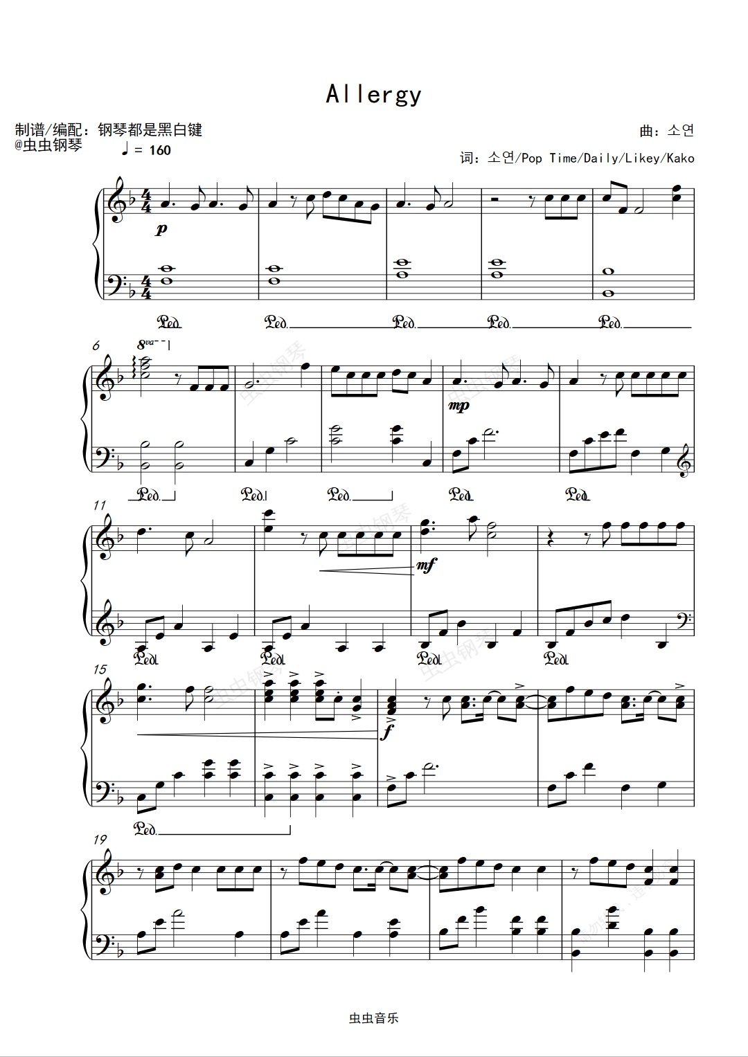 钢琴谱:Allergy - (G)I-DLE ((完美钢琴演奏版)