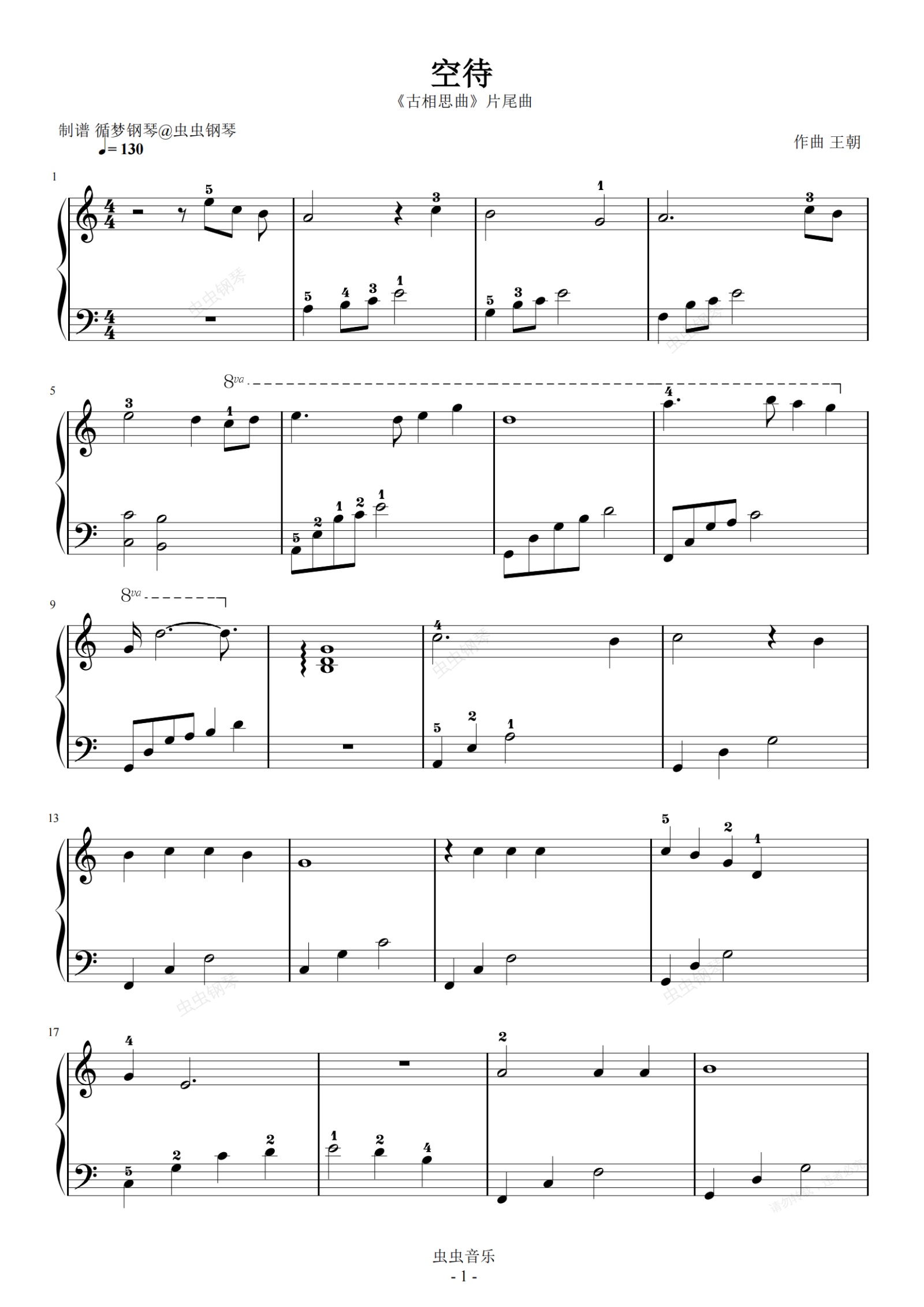 钢琴谱:空待 C调简单版
