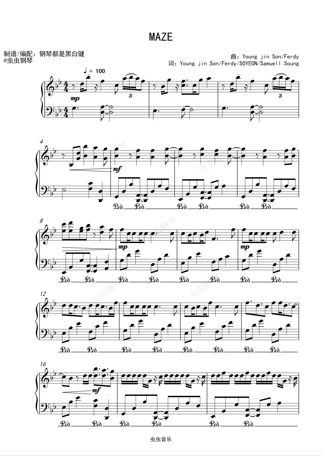 钢琴谱:MAZE - (G)I-DLE ((完美钢琴演奏版)