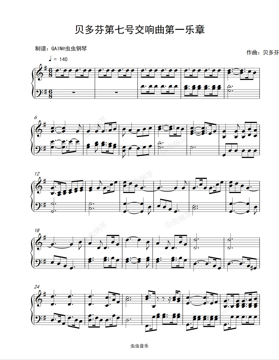 钢琴谱:贝多芬第七号交响曲第一乐章-贝多芬