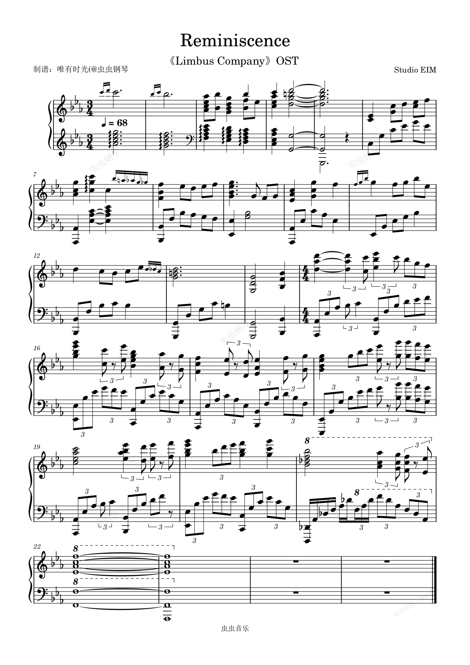 钢琴谱:手游《Limbus Company》(边狱巴士公司)第二赛季李箱主题曲