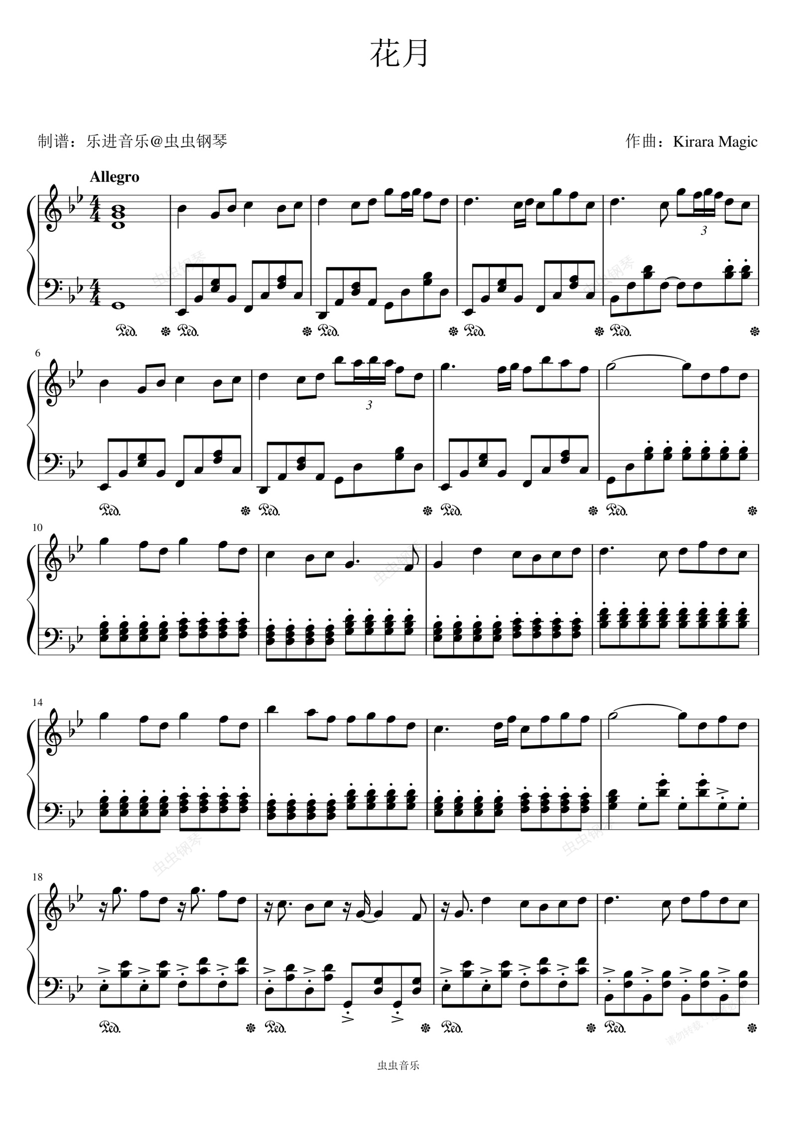 钢琴谱:国风电音《花月》完美还原版