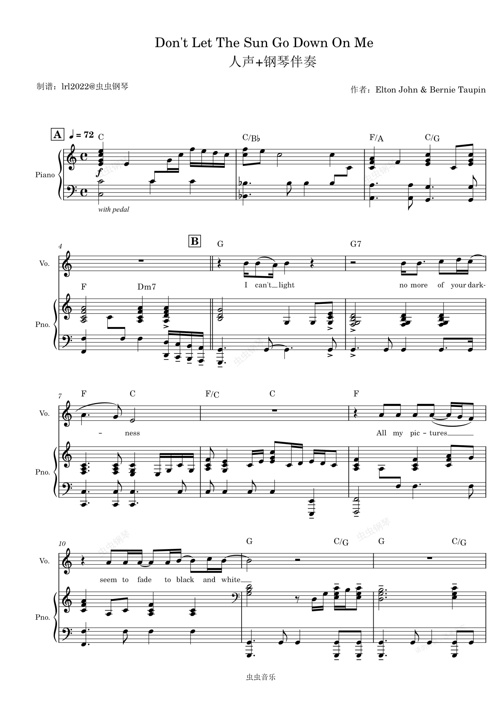 钢琴谱:Don't Let The Sun Go Down On Me -人声加钢琴伴奏 带歌词和弦 - Elton John