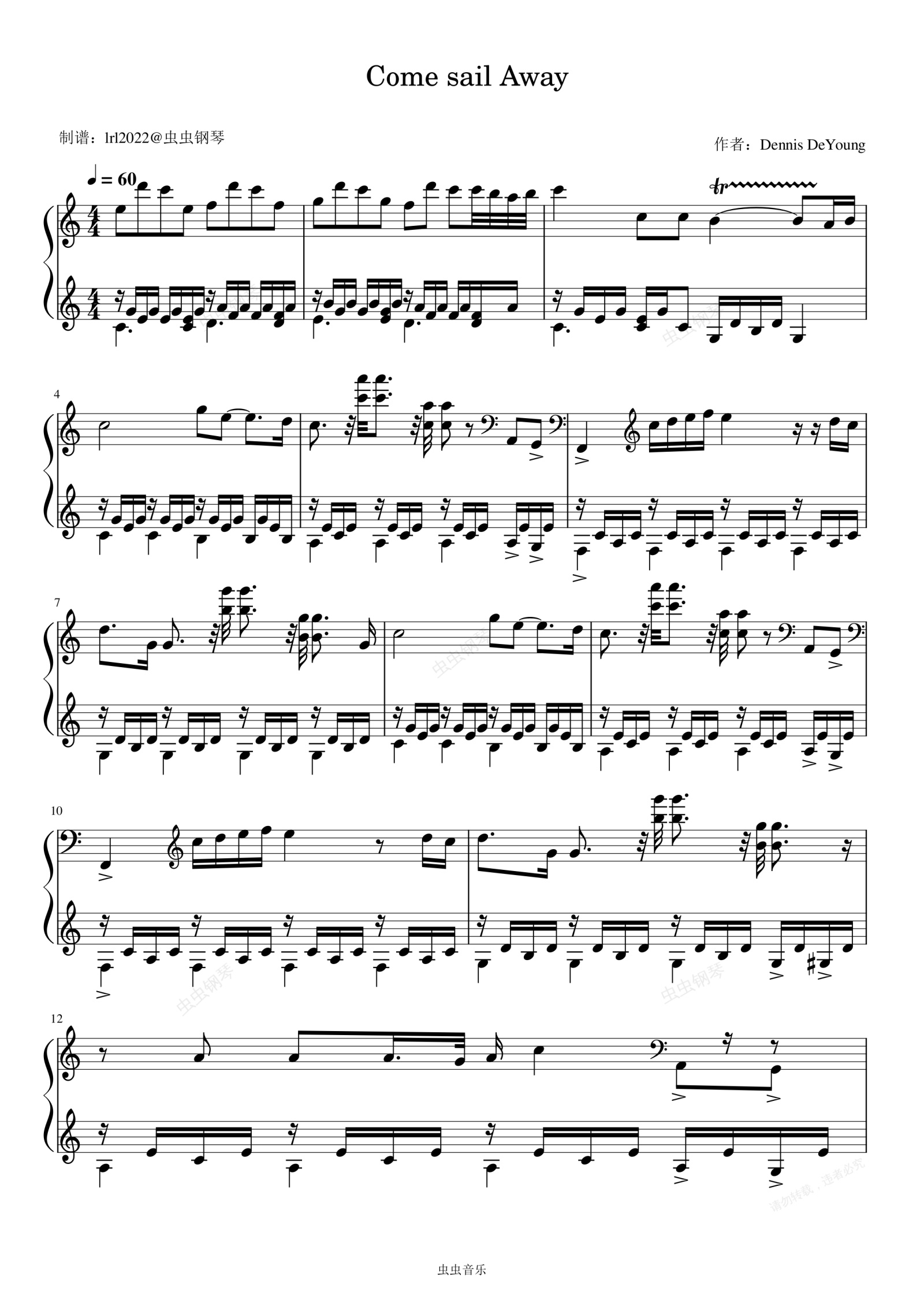 钢琴谱:Come sail Away - Styx - 钢琴独奏