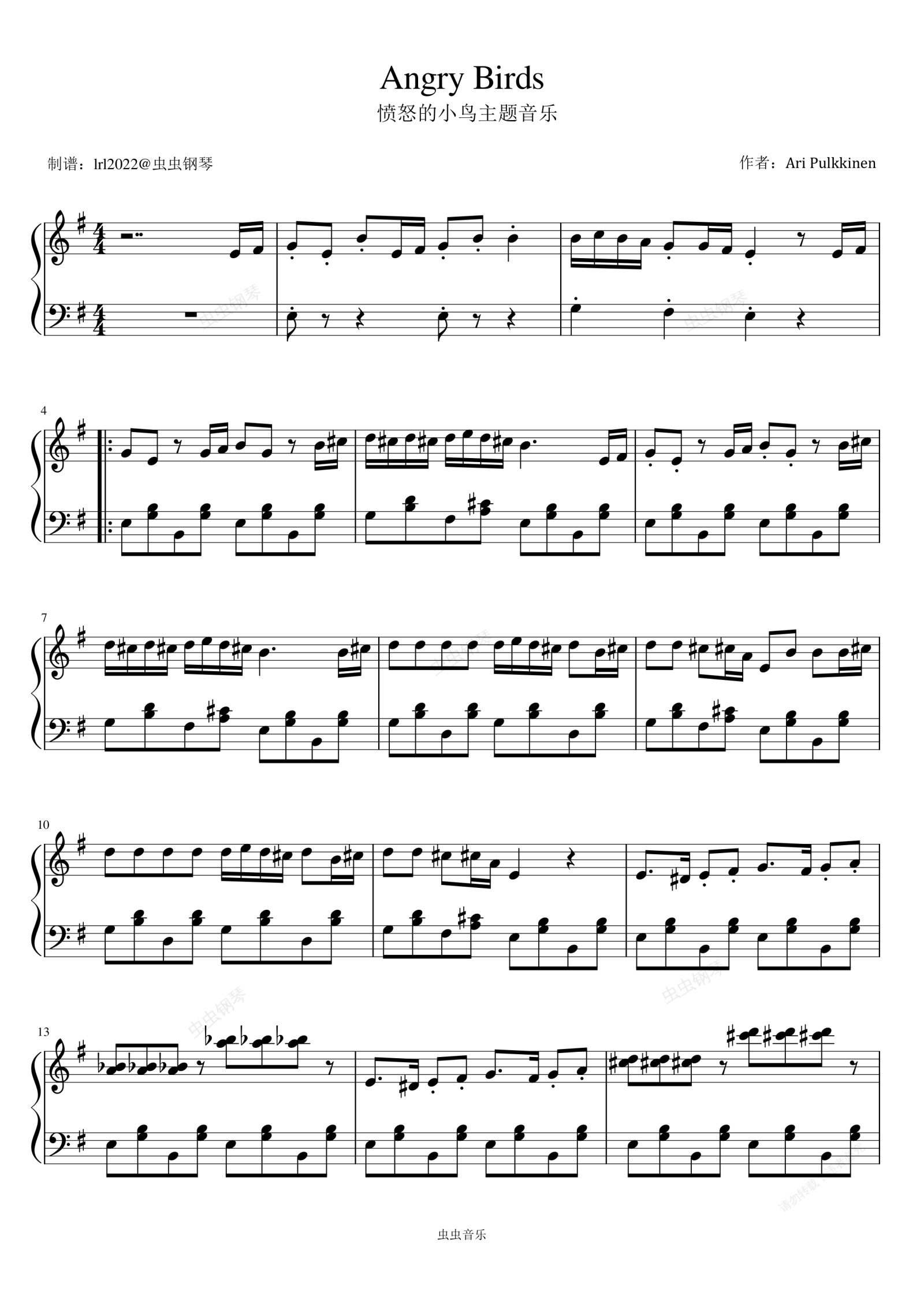 钢琴谱:Angry Birds - 愤怒的小鸟主题音乐 - 钢琴独奏