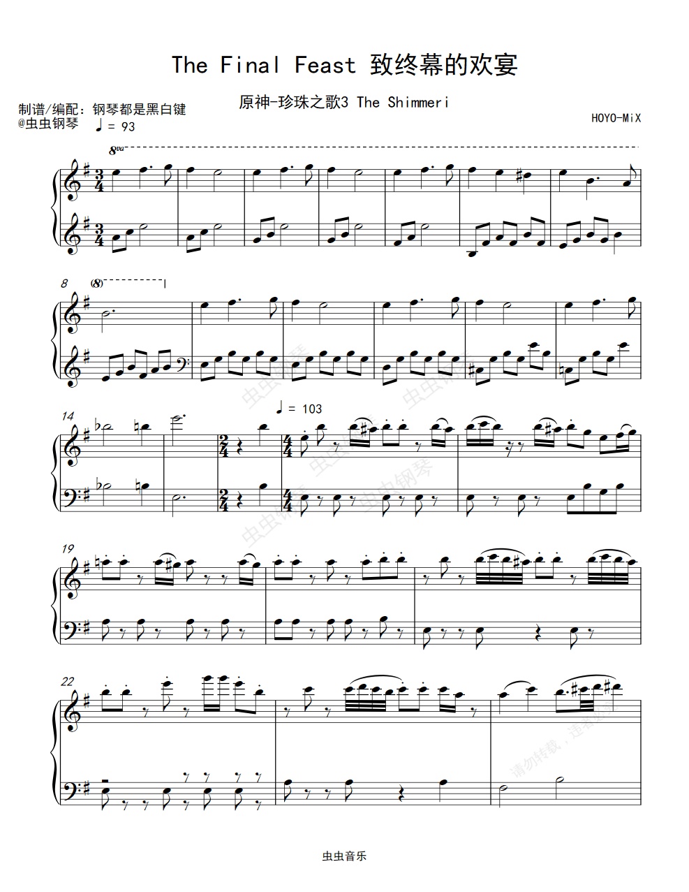 钢琴谱:[原神-珍珠之歌3]The Final Feast 致终幕的欢宴 [钢琴完整演奏版中等难度]