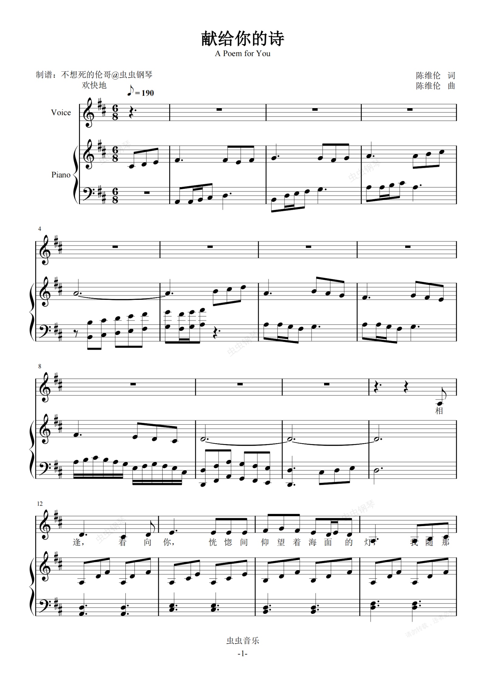钢琴谱:献给你的诗-钢琴弹唱谱
