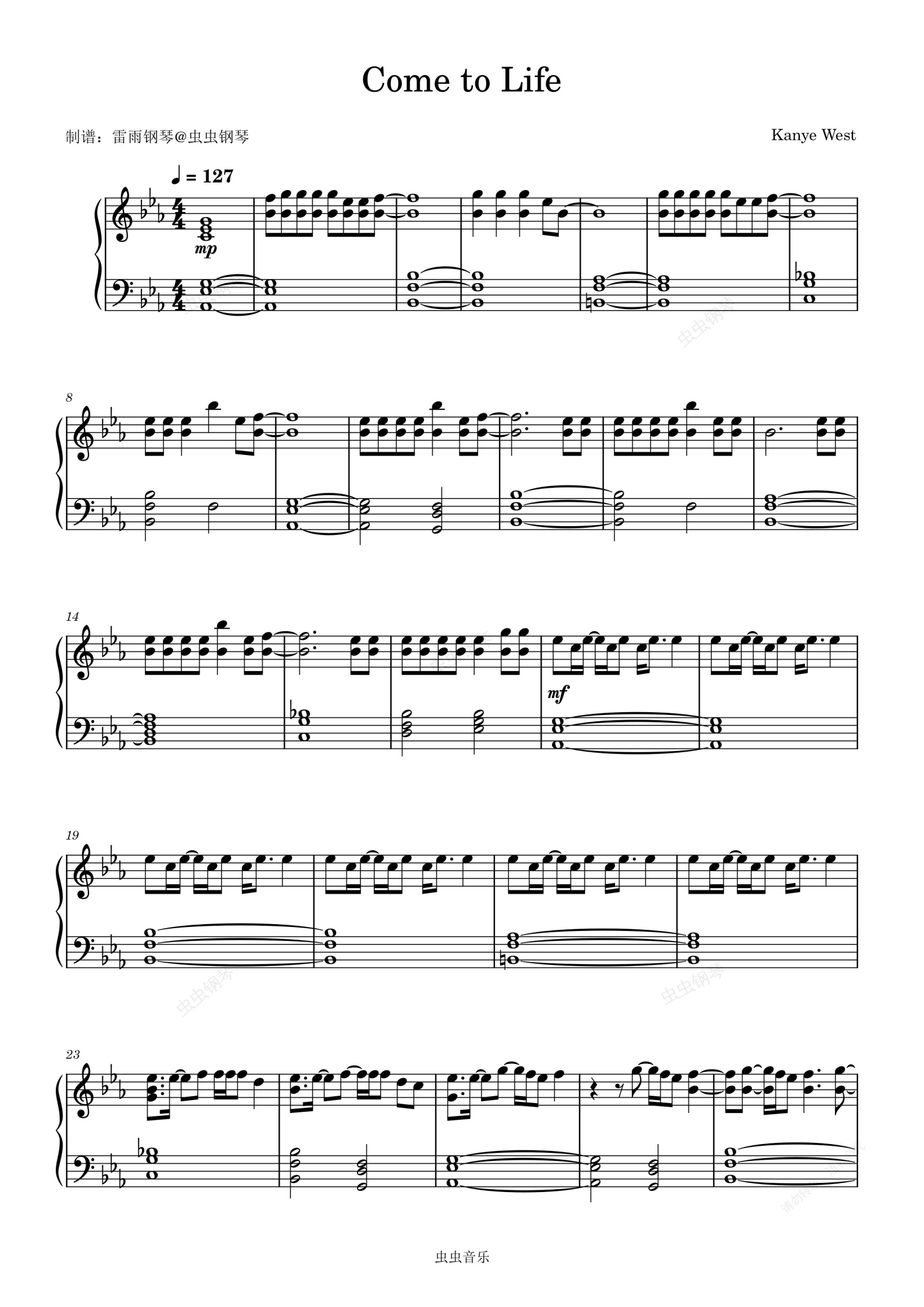 钢琴谱:Come to Life - Kanye West