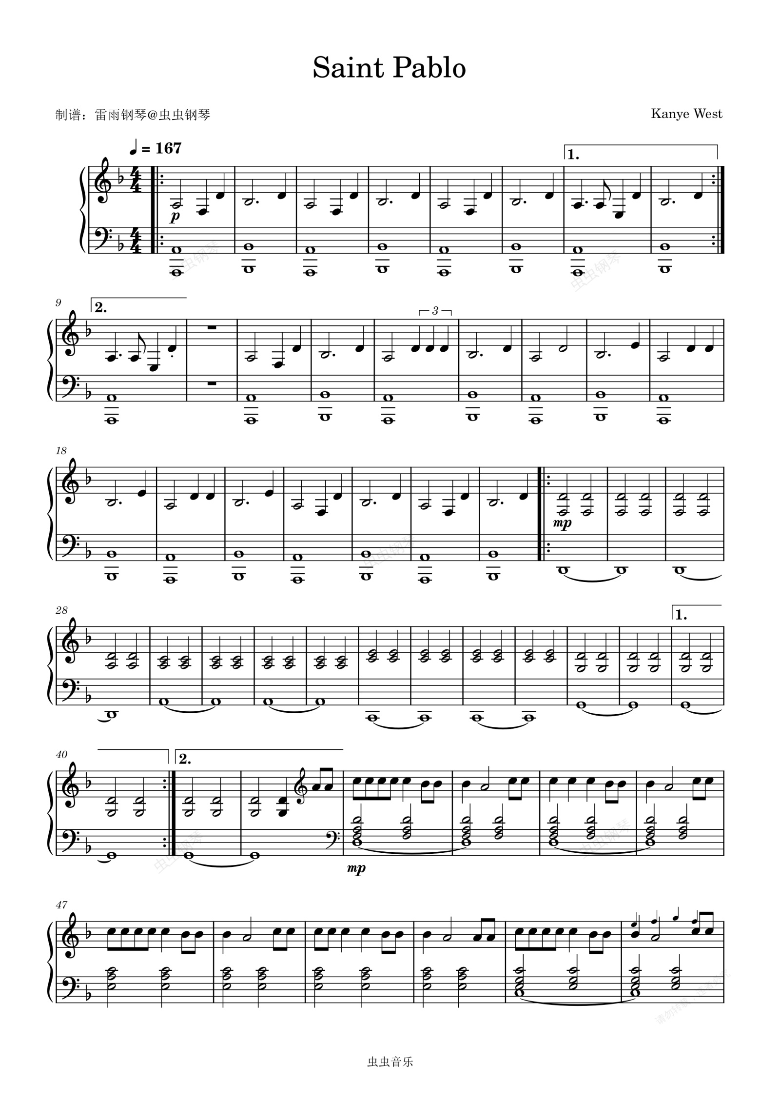 钢琴谱:Saint Pablo - Kanye West (坎耶·韦斯特)/Sampha (萨姆法)