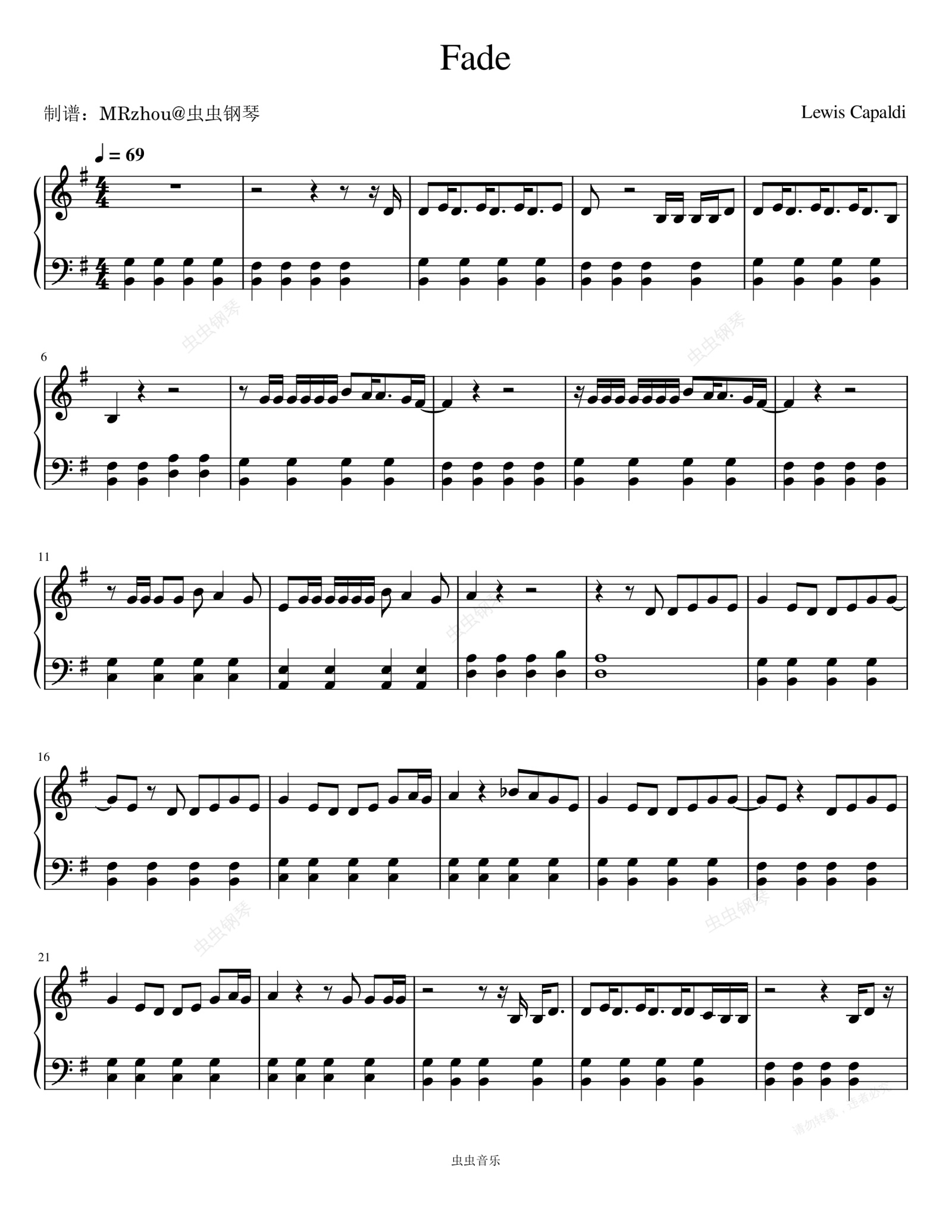 钢琴谱:Fade (Explicit) - Lewis Capaldi